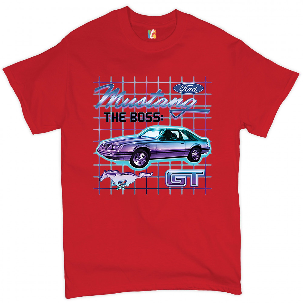 FORD MUSTANG GT THE BOSS t-shirt vintage neon car retro licensed men's tee red