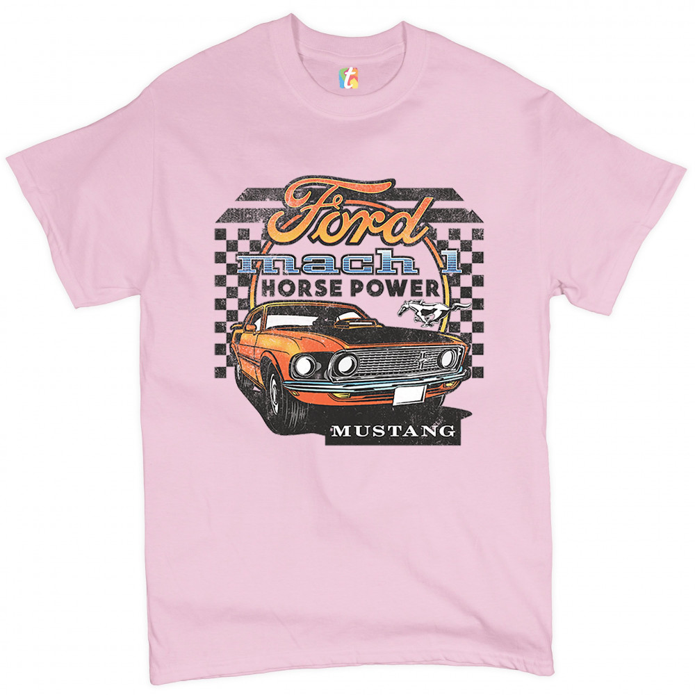 FORD MUSTANG MACH 1 t-shirt horse power american muscle licensed men's tee light pink
