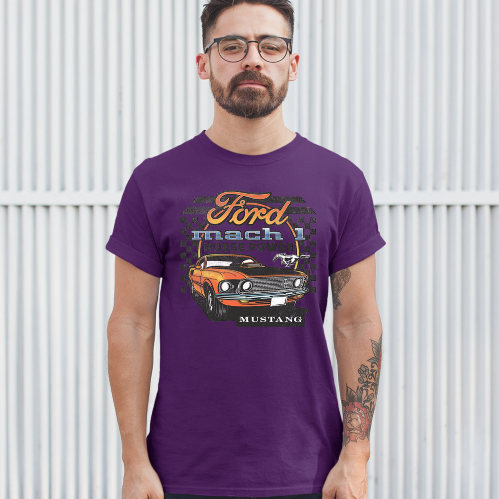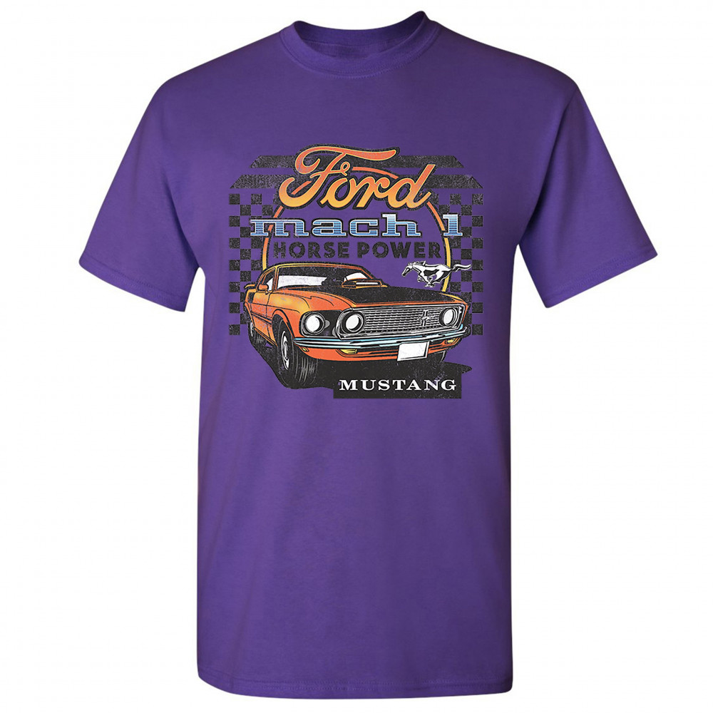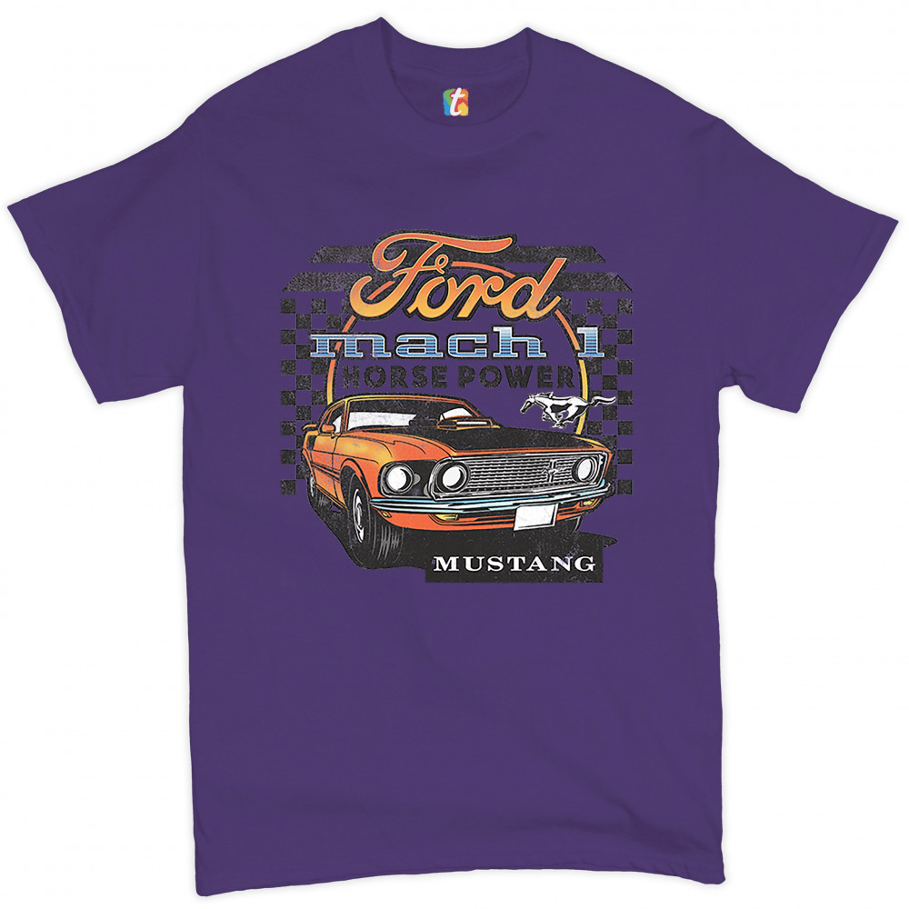 FORD MUSTANG MACH 1 t-shirt horse power american muscle licensed men's tee purple