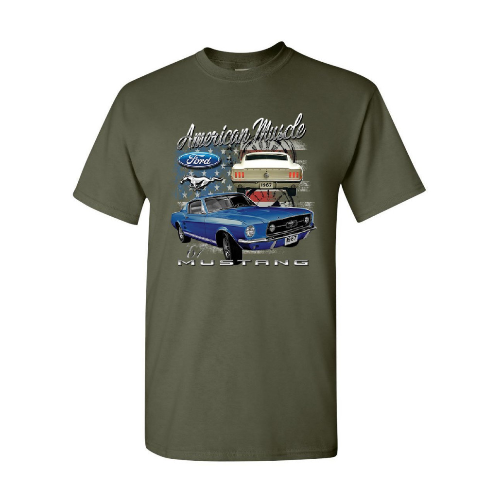 FORD MUSTANG SHELBY 1967 GT t-shirt american made muscle cars mens tee shirt military green