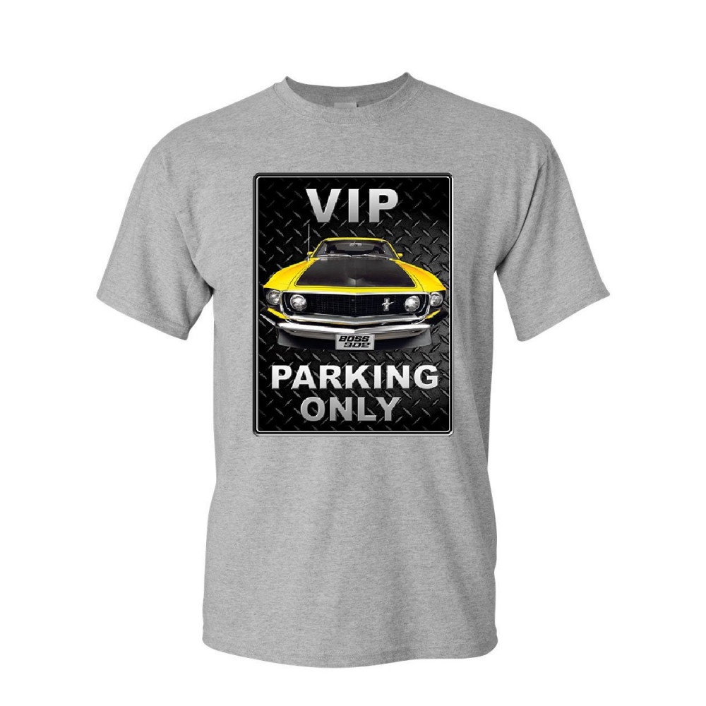 VIP PARKING ONLY ford mustang t-shirt yellow boss 302 muscle car mens tee shirt sport gray