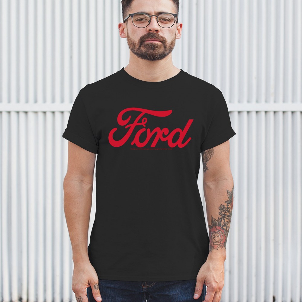 Official Ford script logo in bold red. For fans of muscle cars, classic branding, and iconic American automotive heritage.