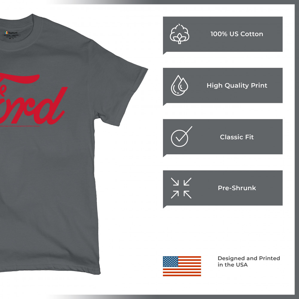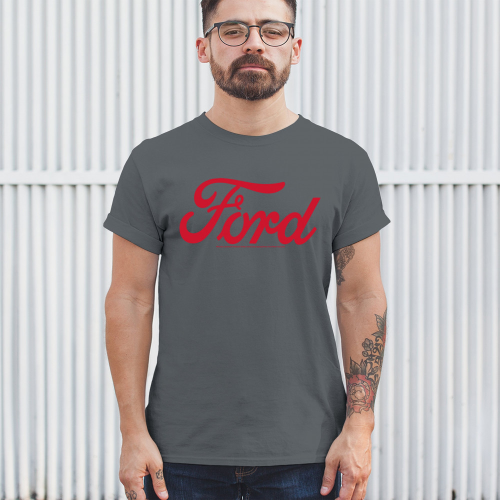 Official Ford script logo in bold red. For fans of muscle cars, classic branding, and iconic American automotive heritage.
