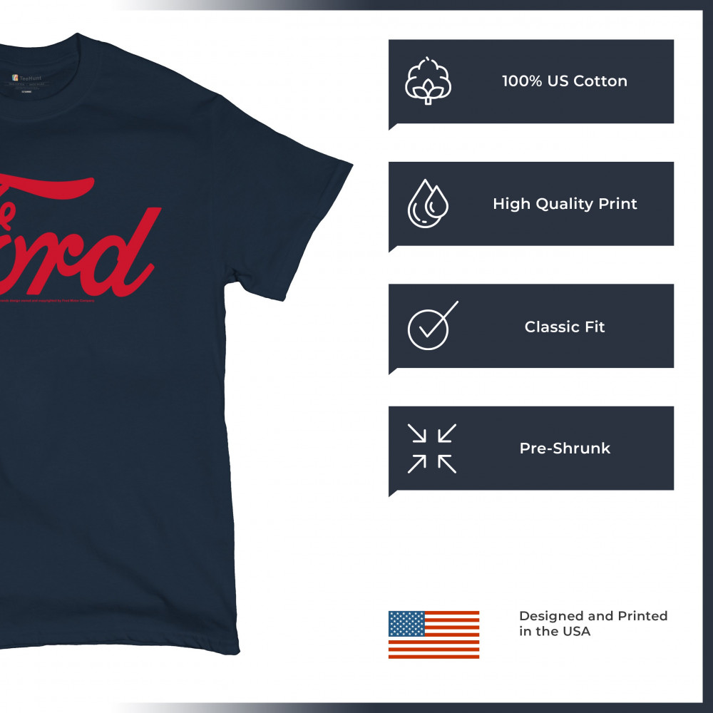 Celebrate American automotive history with this officially licensed Ford script logo design. Rendered in bold red, it honors the legacy of Ford’s muscle car era and modern performance culture. Ideal for collectors, drivers, and auto fans at meets, garages, or everyday wear with pride.