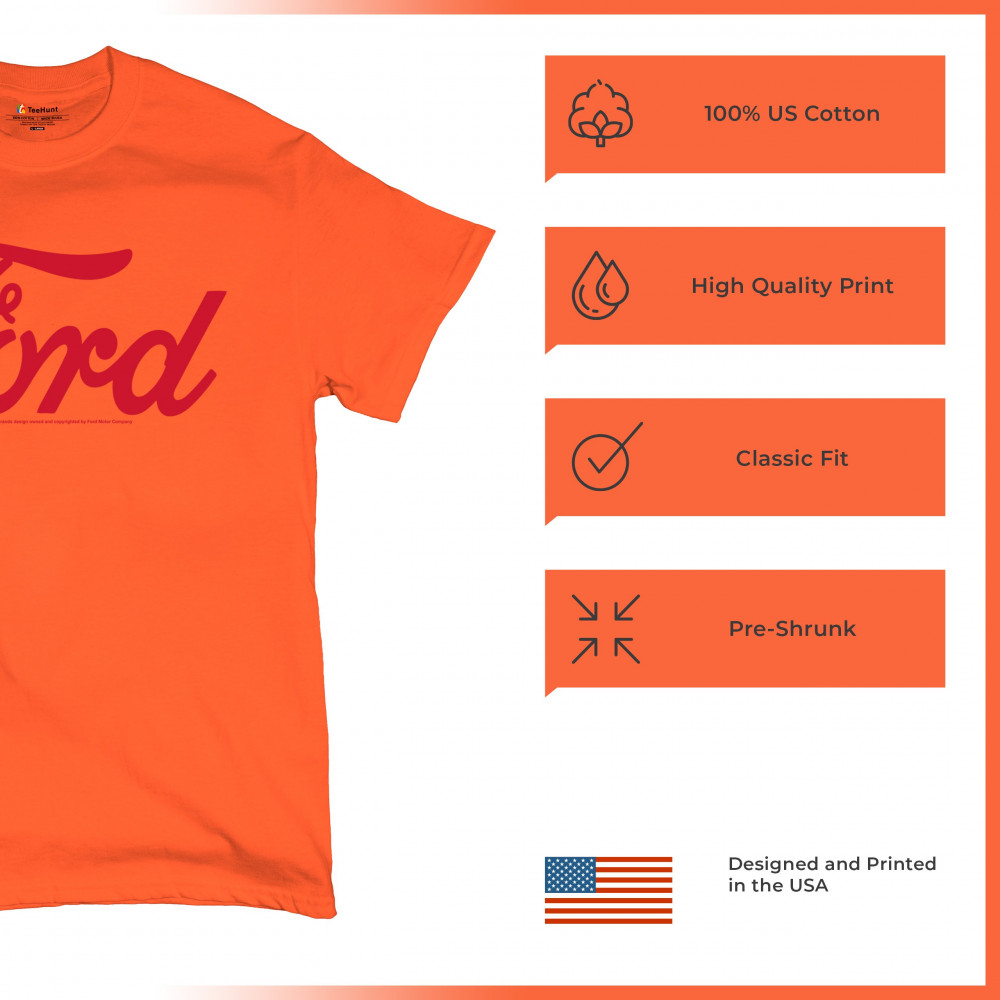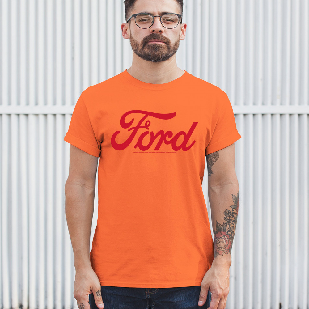 Celebrate American automotive history with this officially licensed Ford script logo design. Rendered in bold red, it honors the legacy of Ford’s muscle car era and modern performance culture. Ideal for collectors, drivers, and auto fans at meets, garages, or everyday wear with pride.