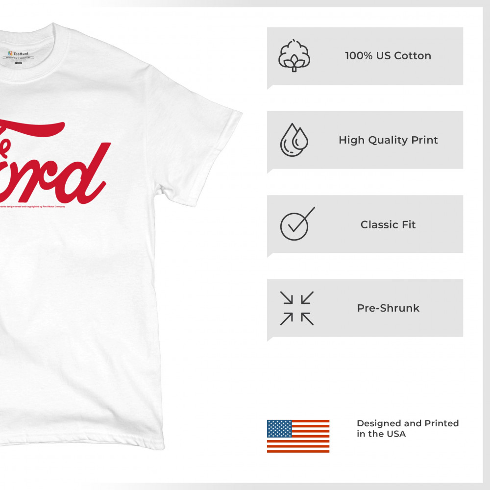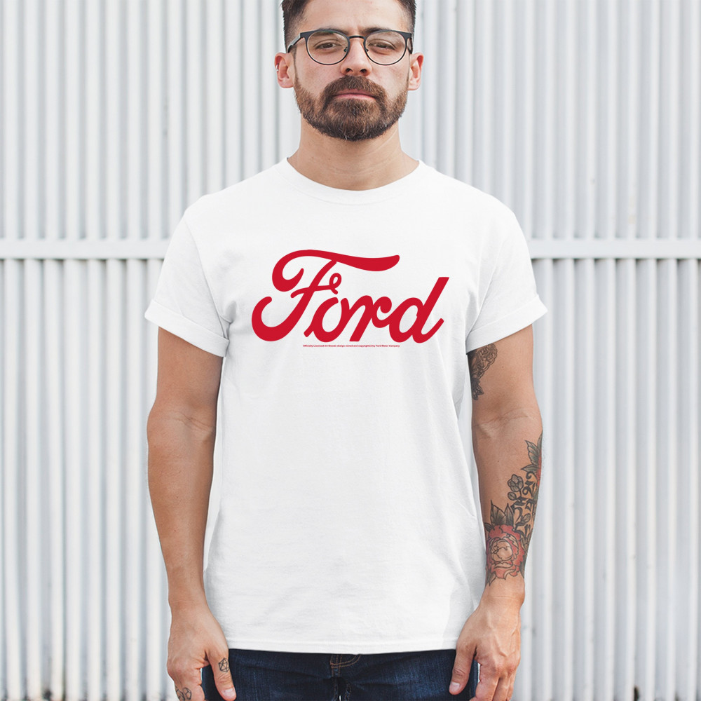 Official Ford script logo in bold red. For fans of muscle cars, classic branding, and iconic American automotive heritage.