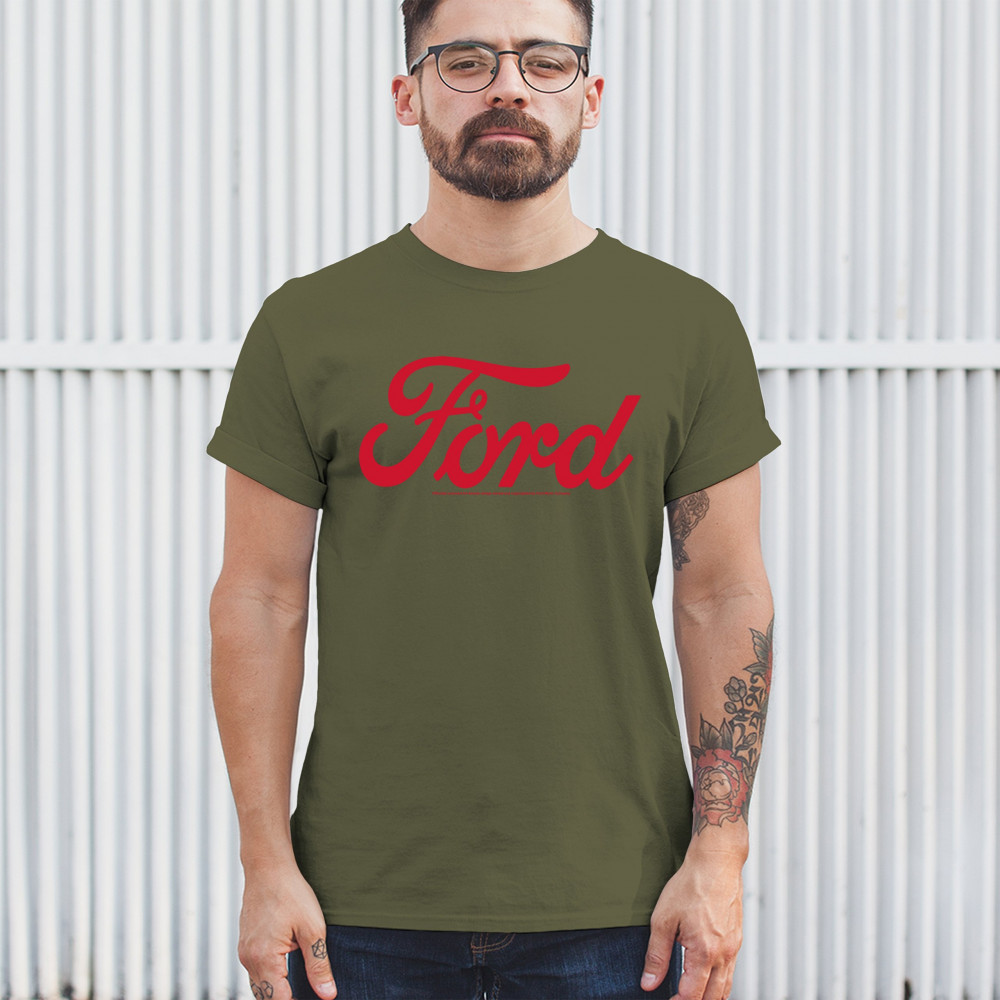 Official Ford script logo in bold red. For fans of muscle cars, classic branding, and iconic American automotive heritage.