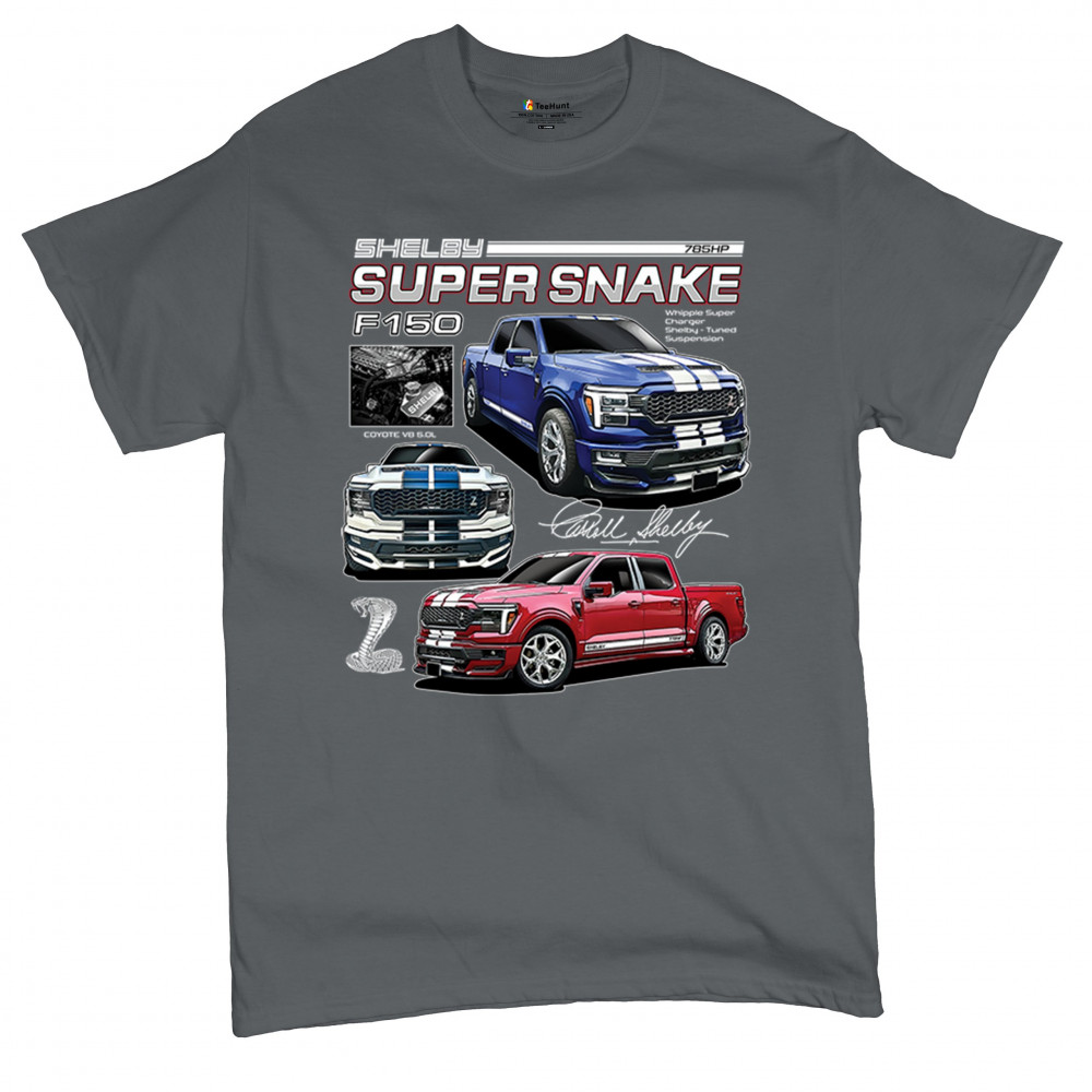 Ford Shelby Super Snake F-150 design featuring 785HP supercharged V8, Shelby pickup heritage, Shelby American truck power, and off-road muscle.