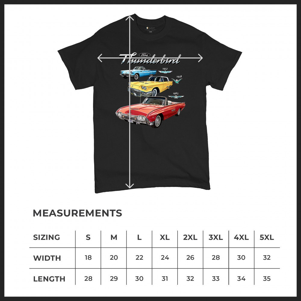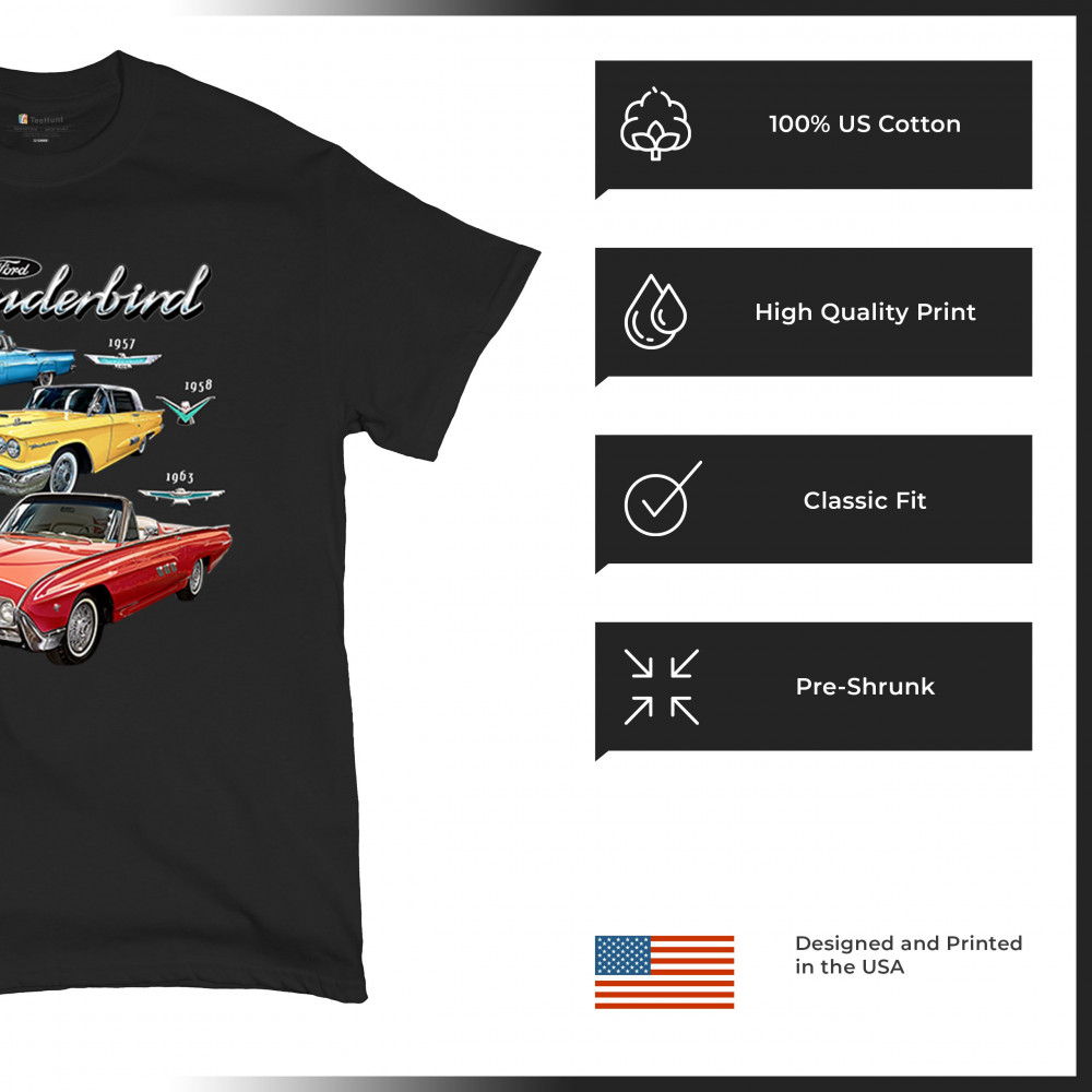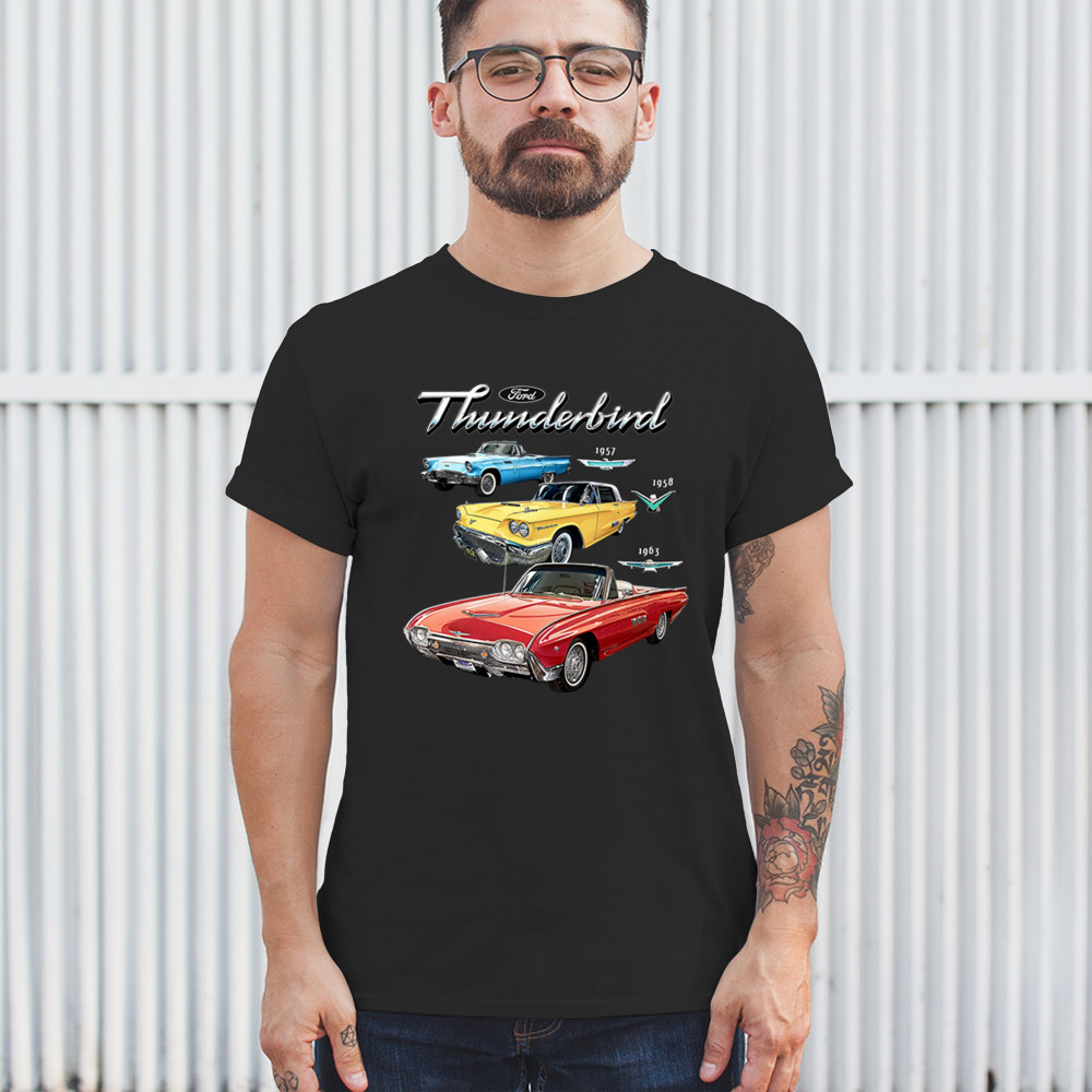 Iconic Ford Thunderbird design with 1957, 1958, and 1963 models. A vintage tribute for car collectors and American muscle fans.