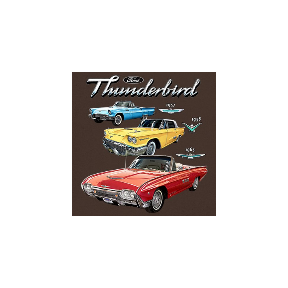 Iconic Ford Thunderbird design with 1957, 1958, and 1963 models. A vintage tribute for car collectors and American muscle fans.