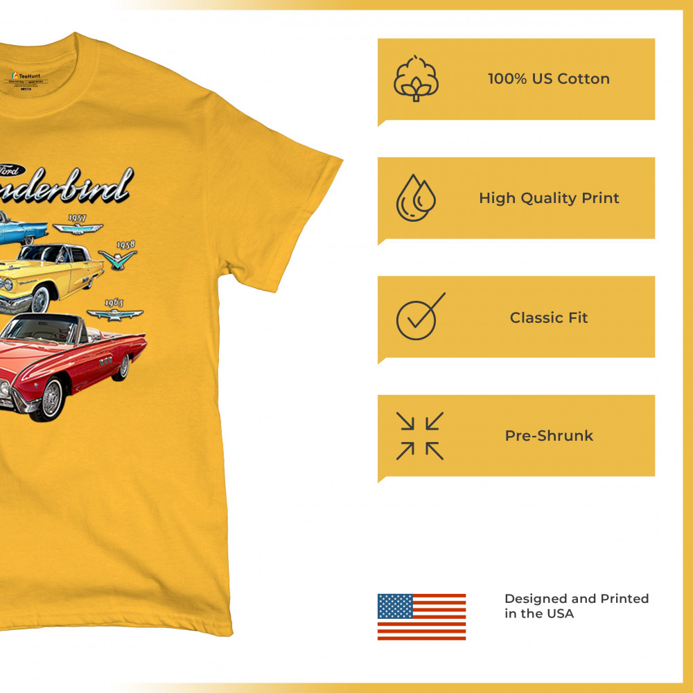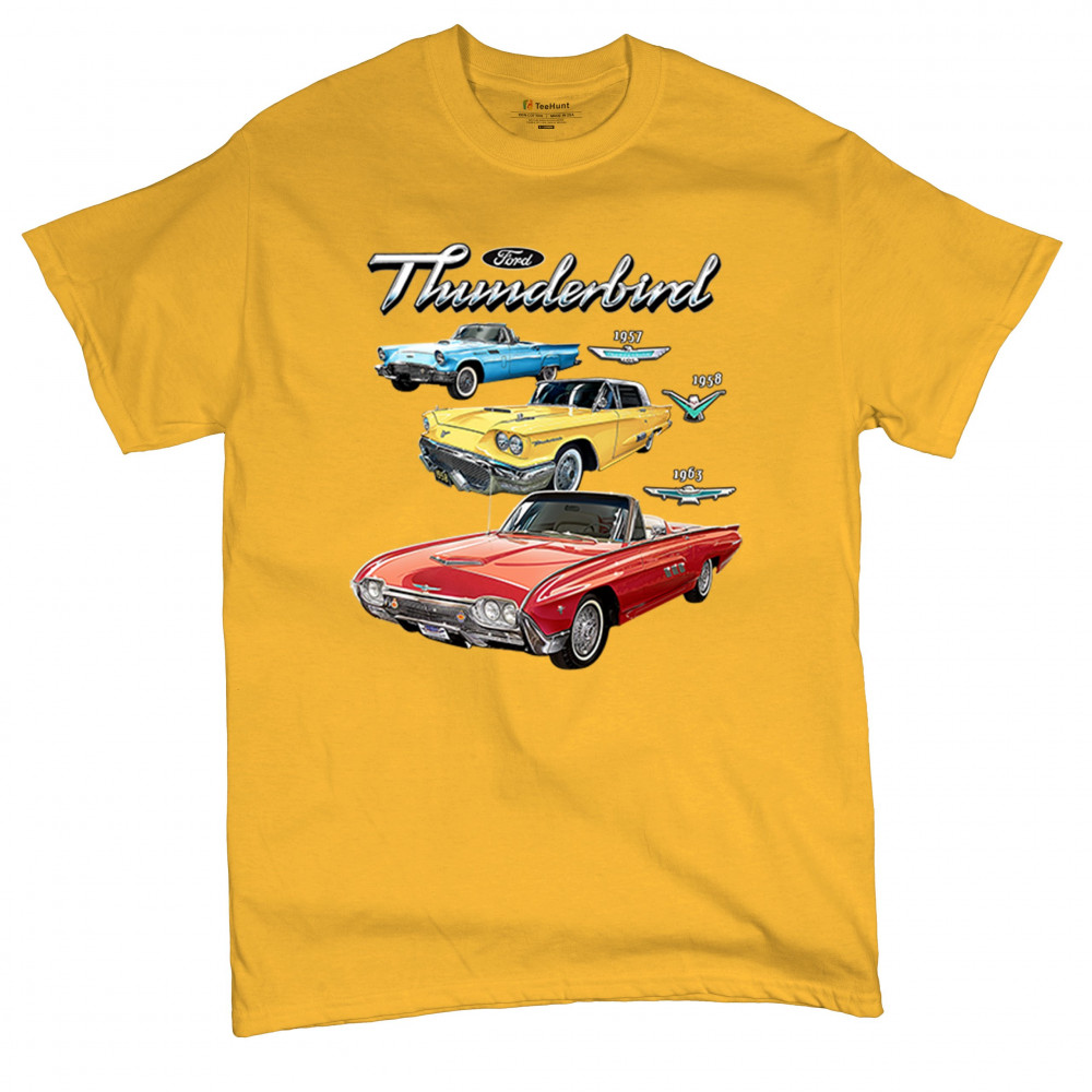 Iconic Ford Thunderbird design with 1957, 1958, and 1963 models. A vintage tribute for car collectors and American muscle fans.
