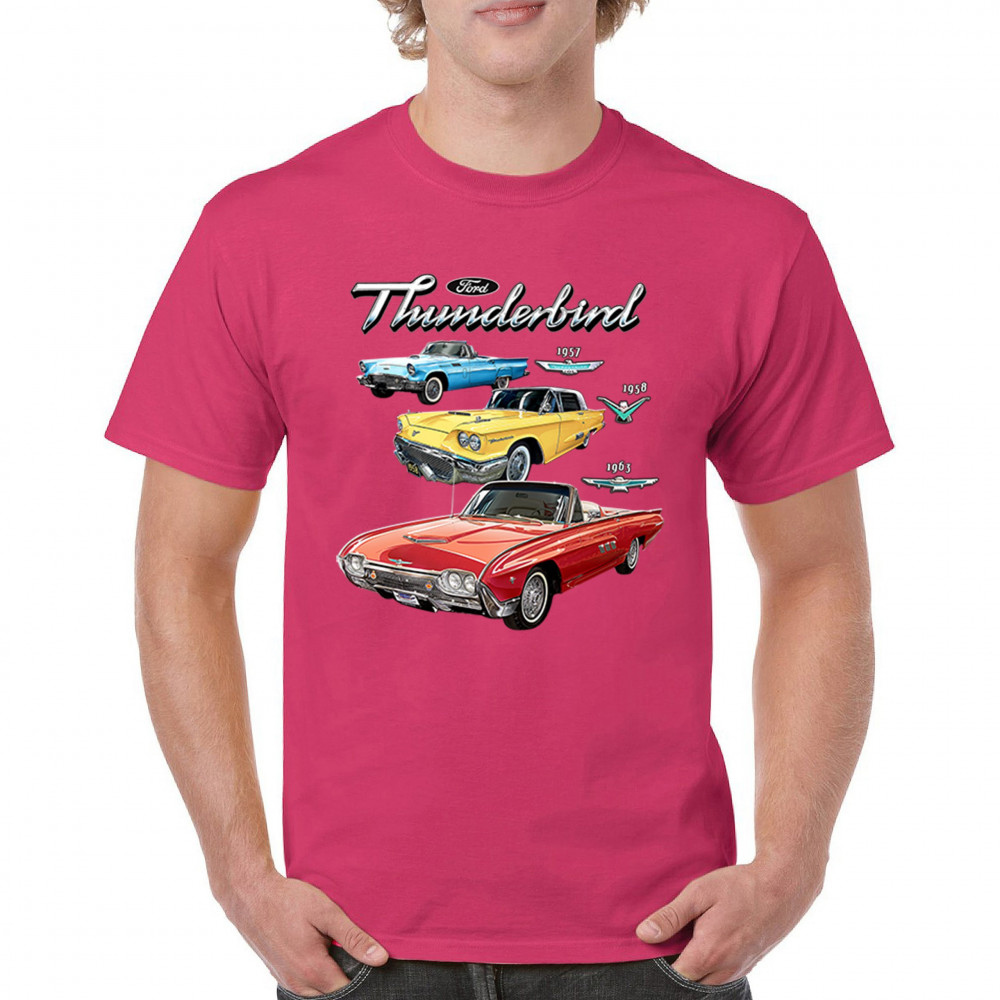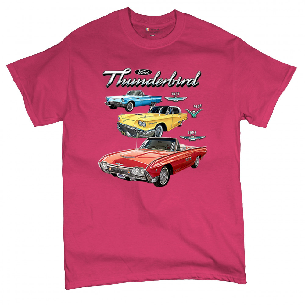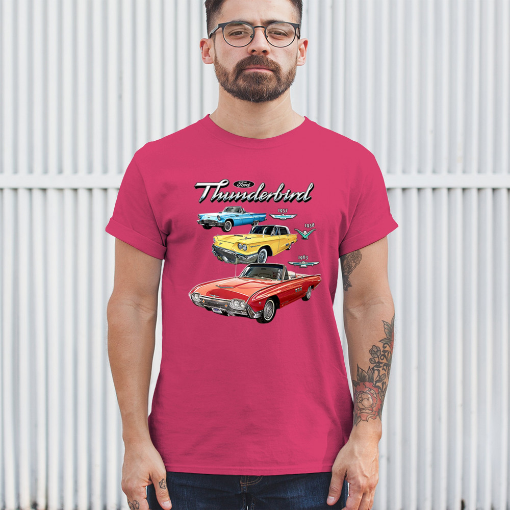 Iconic Ford Thunderbird design with 1957, 1958, and 1963 models. A vintage tribute for car collectors and American muscle fans.