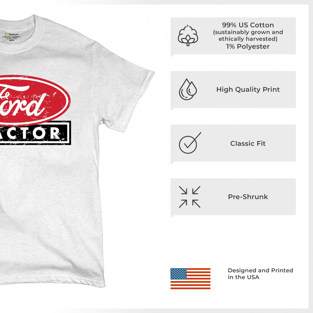 Classic Ford Tractor logo design in rustic red. A vintage tribute for farmers, collectors, and fans of agricultural heritage.