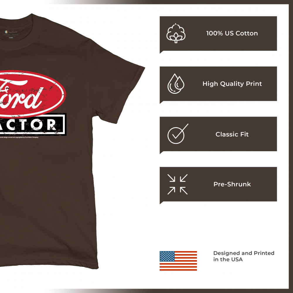 Classic Ford Tractor logo design in rustic red. A vintage tribute for farmers, collectors, and fans of agricultural heritage.