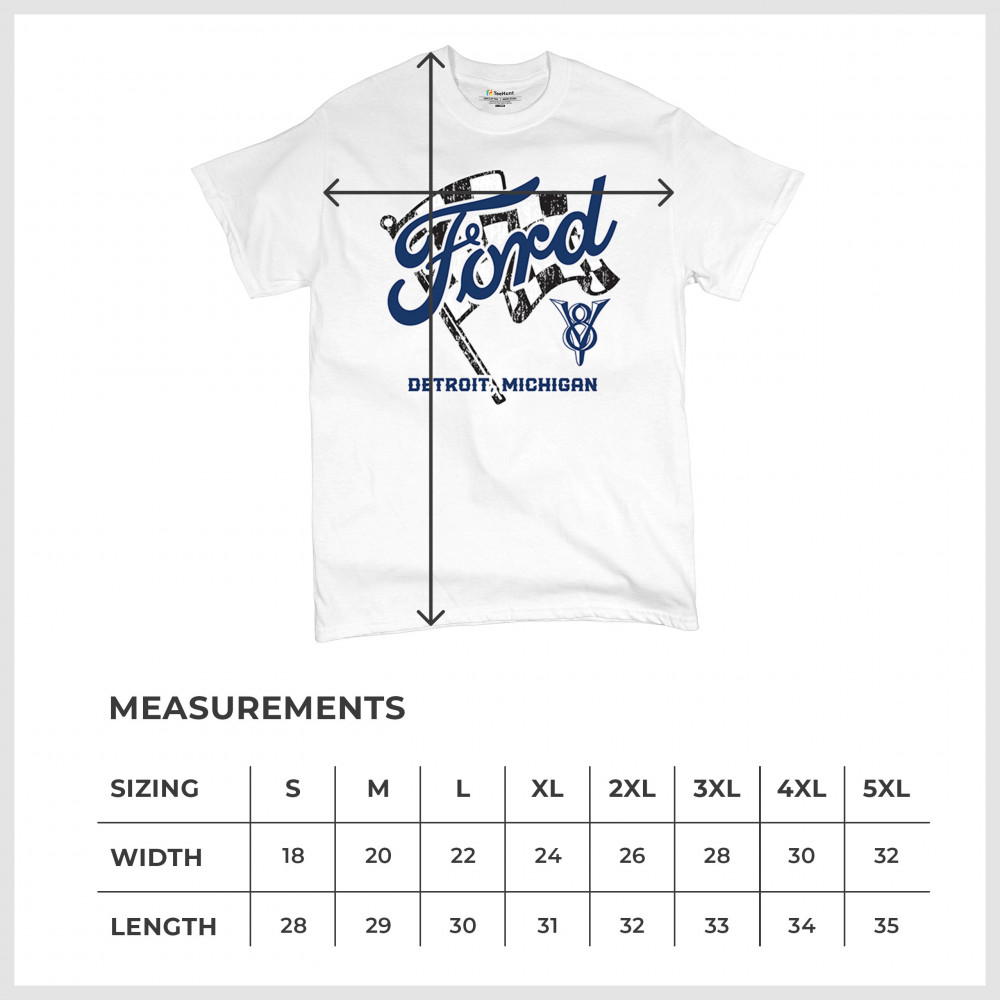 This officially licensed Ford Motor Co. design pays homage to Detroit, Michigan’s automotive legacy. Featuring the checkered flag and V8 emblem, it's perfect for classic car lovers, Mustang enthusiasts, and those who appreciate high-performance vehicles. Whether you’re a fan of pony cars, vintage muscle cars, or drag racing culture, this American muscle car-inspired piece is a must-have for your collection.