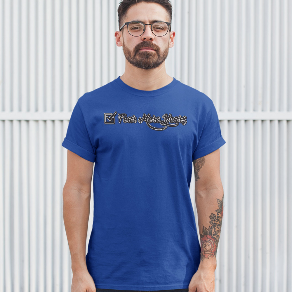 A political print featuring a checkbox and the words "Four more years". A great choice to wear for a Trump rally or give as a gift to a Donald Trump and Mike Pence supporter before 2020 presidential elections.