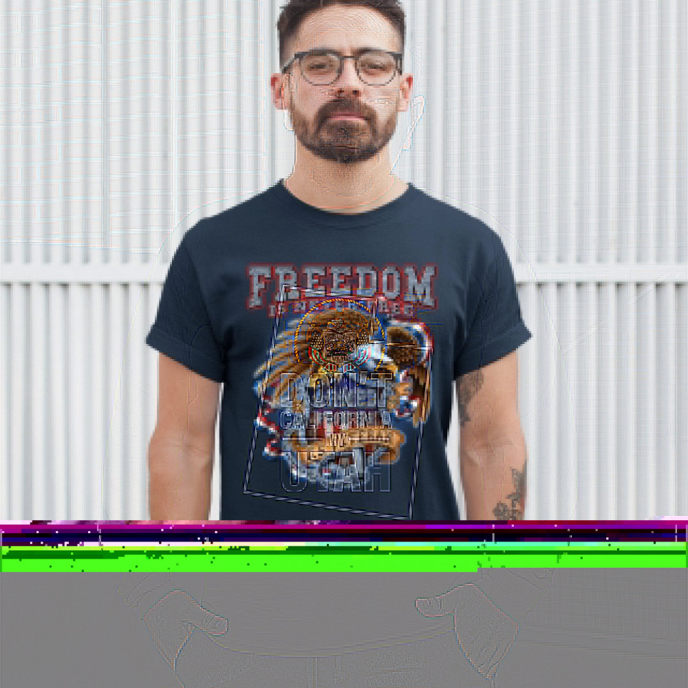 A patriotic print featuring a bald eagle holding a shield with an American Flag and "Armed Forces" written on it. The print says: "Freedom Is Never Free, 1776, U.S. Veteran". Great choice to wear on Independence Day or any other patriotic holiday.