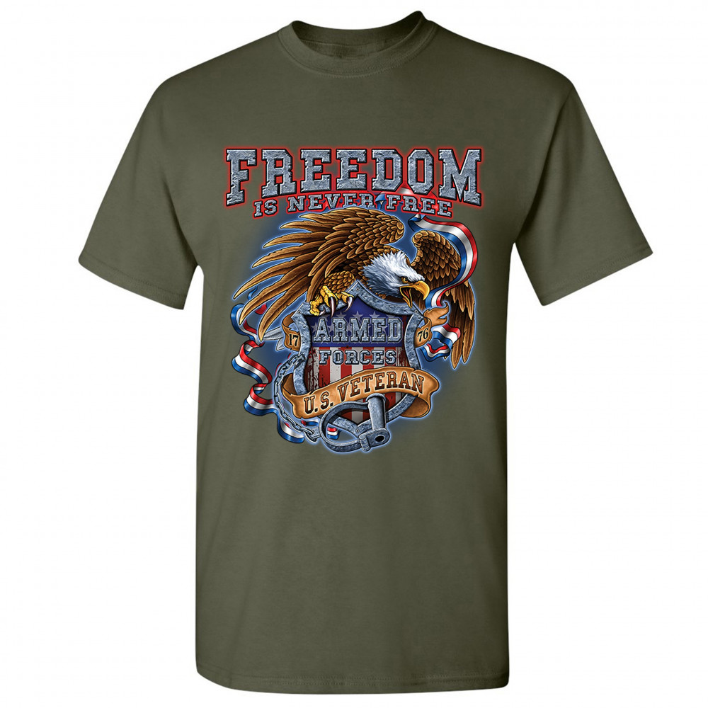 FREEDOM IS NEVER FREE t-shirt u.s. veteran armed forces military men's tee military green