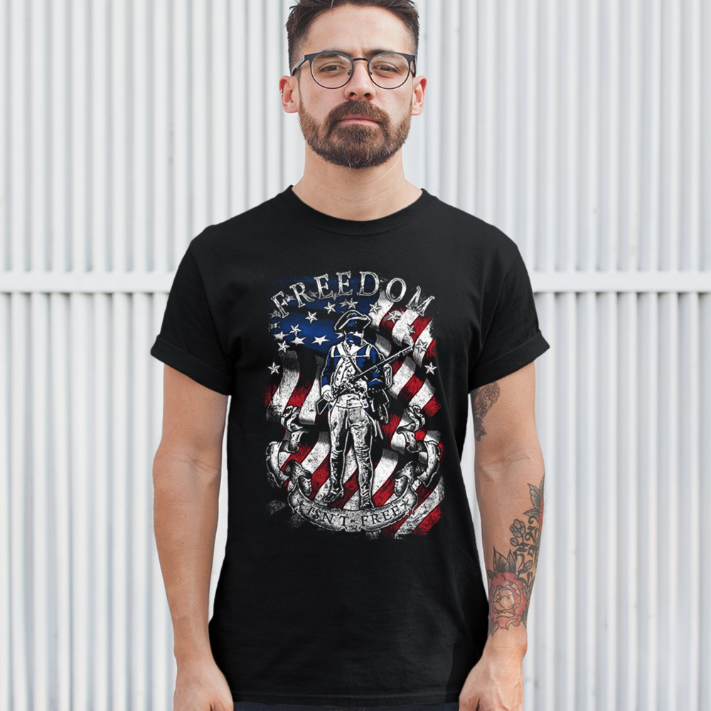FREEDOM ISN'T FREE t-shirt independence liberty american flag men's tee black