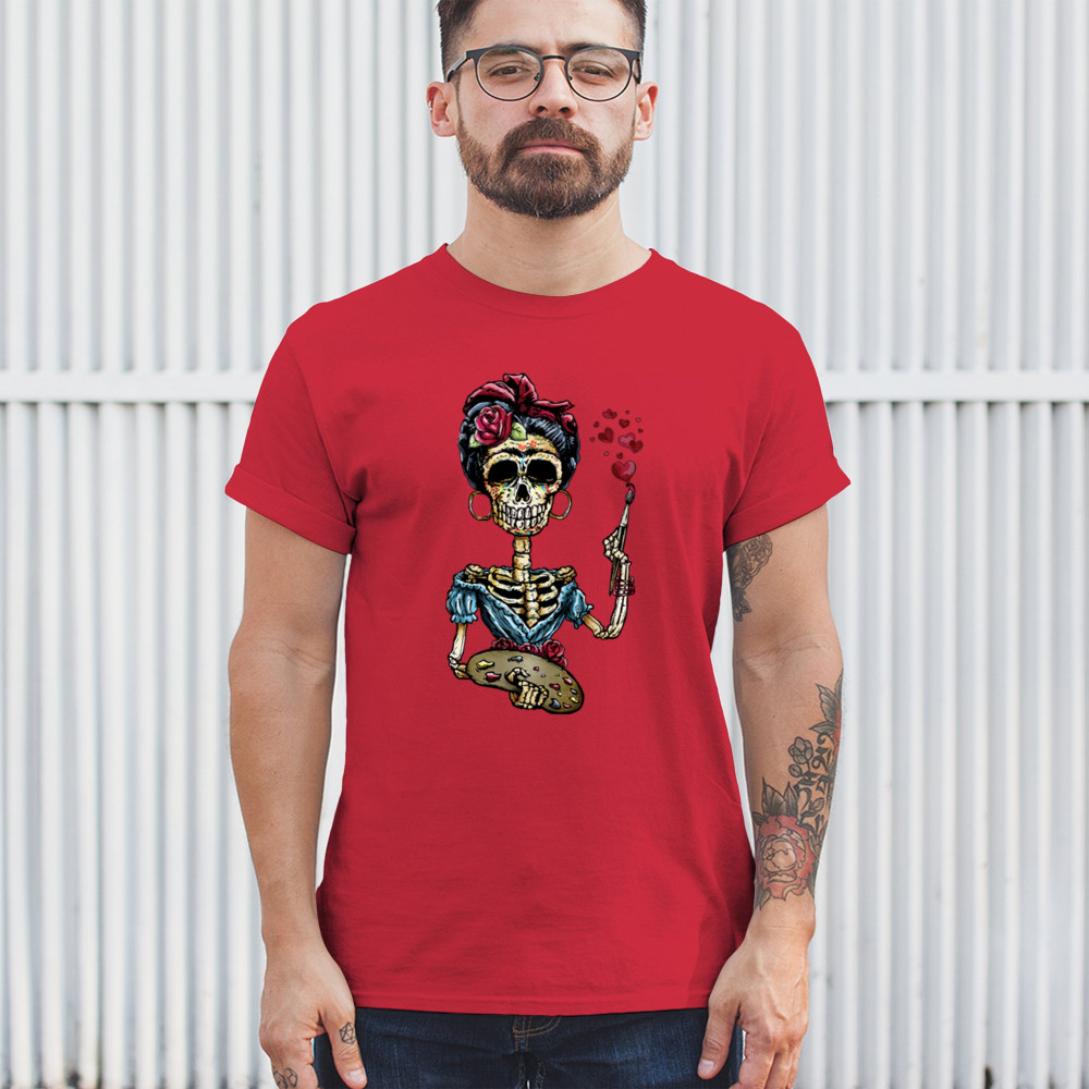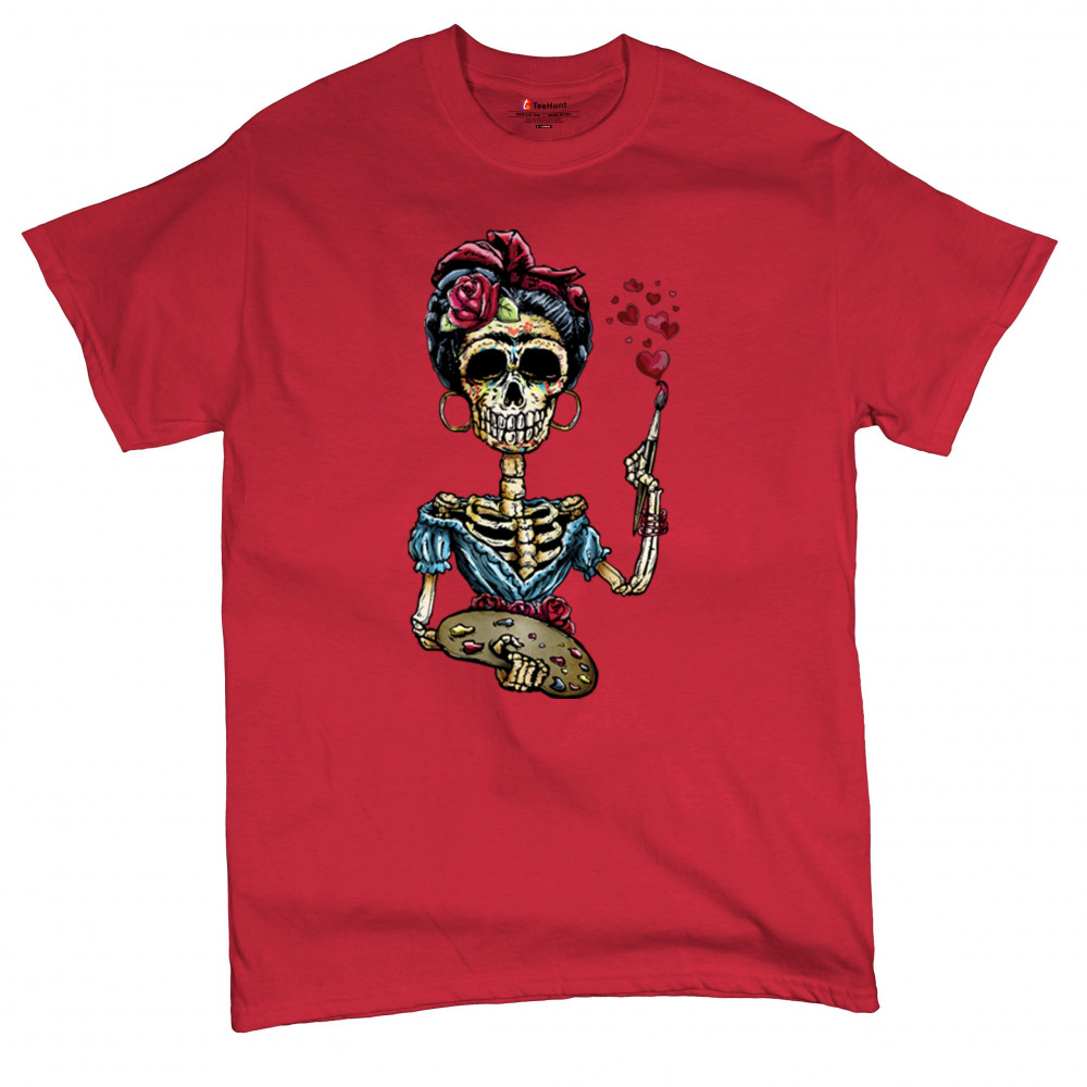 FRIDA KAHLO SUGAR SKULL t-shirt calavera mexican day of the dead men's tee red