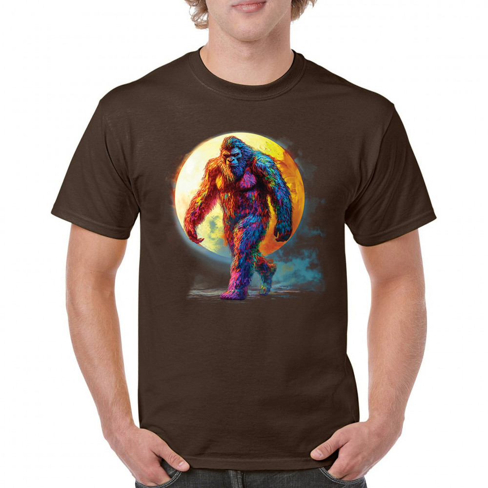 Step into a vivid cryptid dream with this rainbow Bigfoot design. Featuring a multicolor Sasquatch walking past a full moon, it fuses mythical mystery with bold, surreal art. Perfect for festival fans, night hikers, and lovers of the unexplained, this design brings eye-catching style to your wild side.