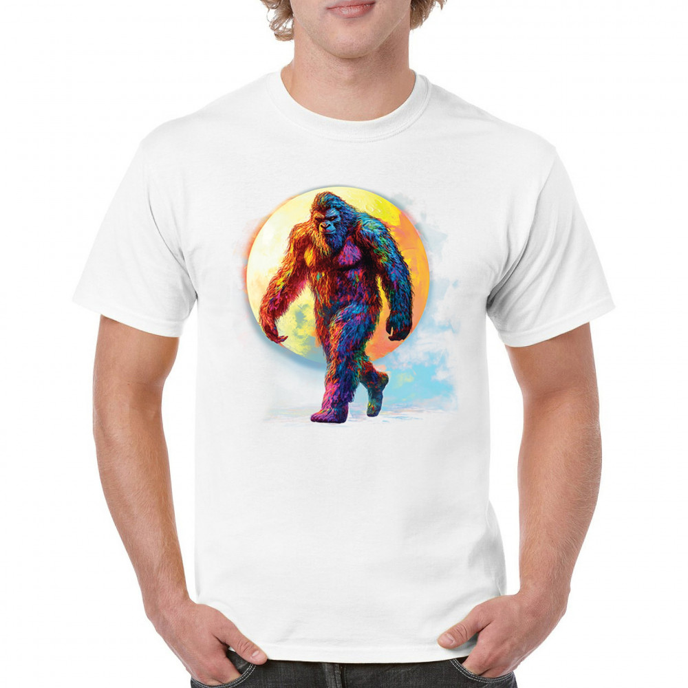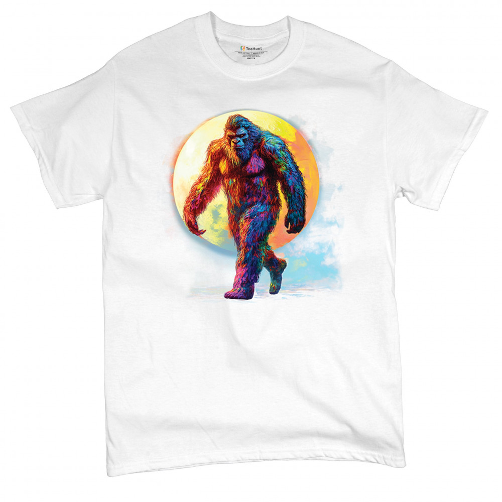 Step into a vivid cryptid dream with this rainbow Bigfoot design. Featuring a multicolor Sasquatch walking past a full moon, it fuses mythical mystery with bold, surreal art. Perfect for festival fans, night hikers, and lovers of the unexplained, this design brings eye-catching style to your wild side.