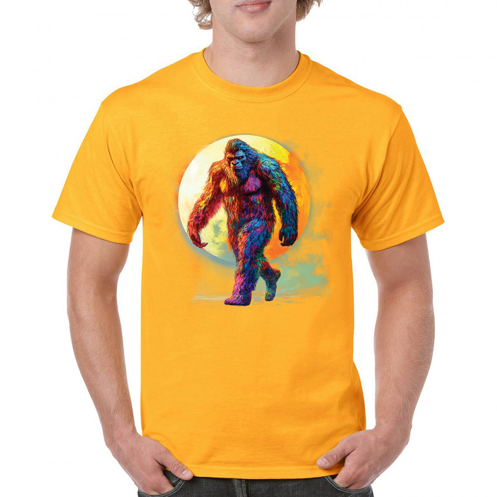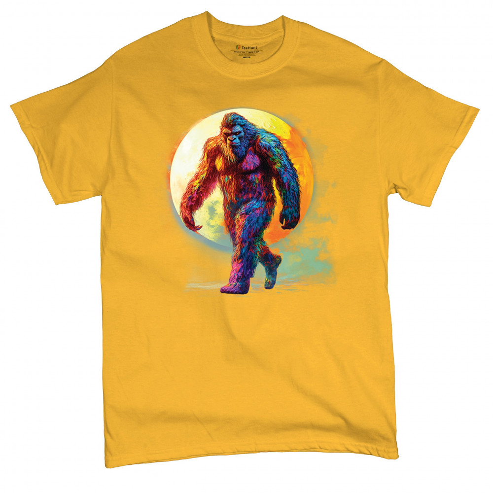 Step into a vivid cryptid dream with this rainbow Bigfoot design. Featuring a multicolor Sasquatch walking past a full moon, it fuses mythical mystery with bold, surreal art. Perfect for festival fans, night hikers, and lovers of the unexplained, this design brings eye-catching style to your wild side.
