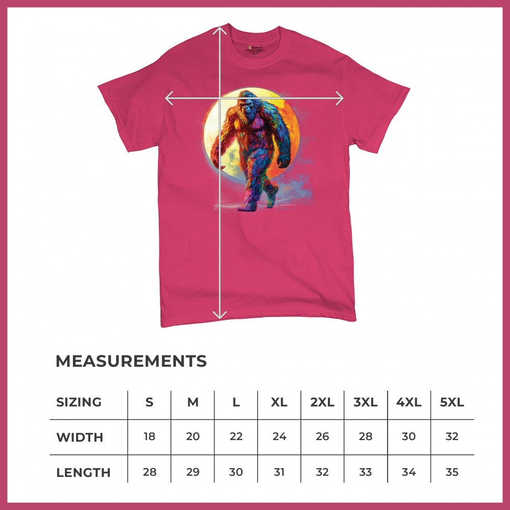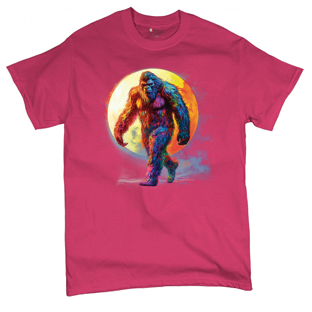 Step into a vivid cryptid dream with this rainbow Bigfoot design. Featuring a multicolor Sasquatch walking past a full moon, it fuses mythical mystery with bold, surreal art. Perfect for festival fans, night hikers, and lovers of the unexplained, this design brings eye-catching style to your wild side.