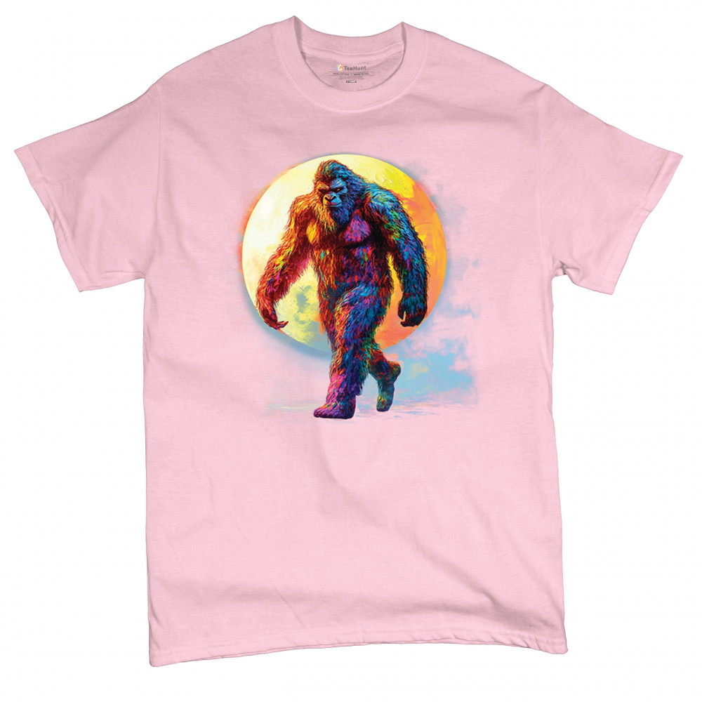Step into a vivid cryptid dream with this rainbow Bigfoot design. Featuring a multicolor Sasquatch walking past a full moon, it fuses mythical mystery with bold, surreal art. Perfect for festival fans, night hikers, and lovers of the unexplained, this design brings eye-catching style to your wild side.