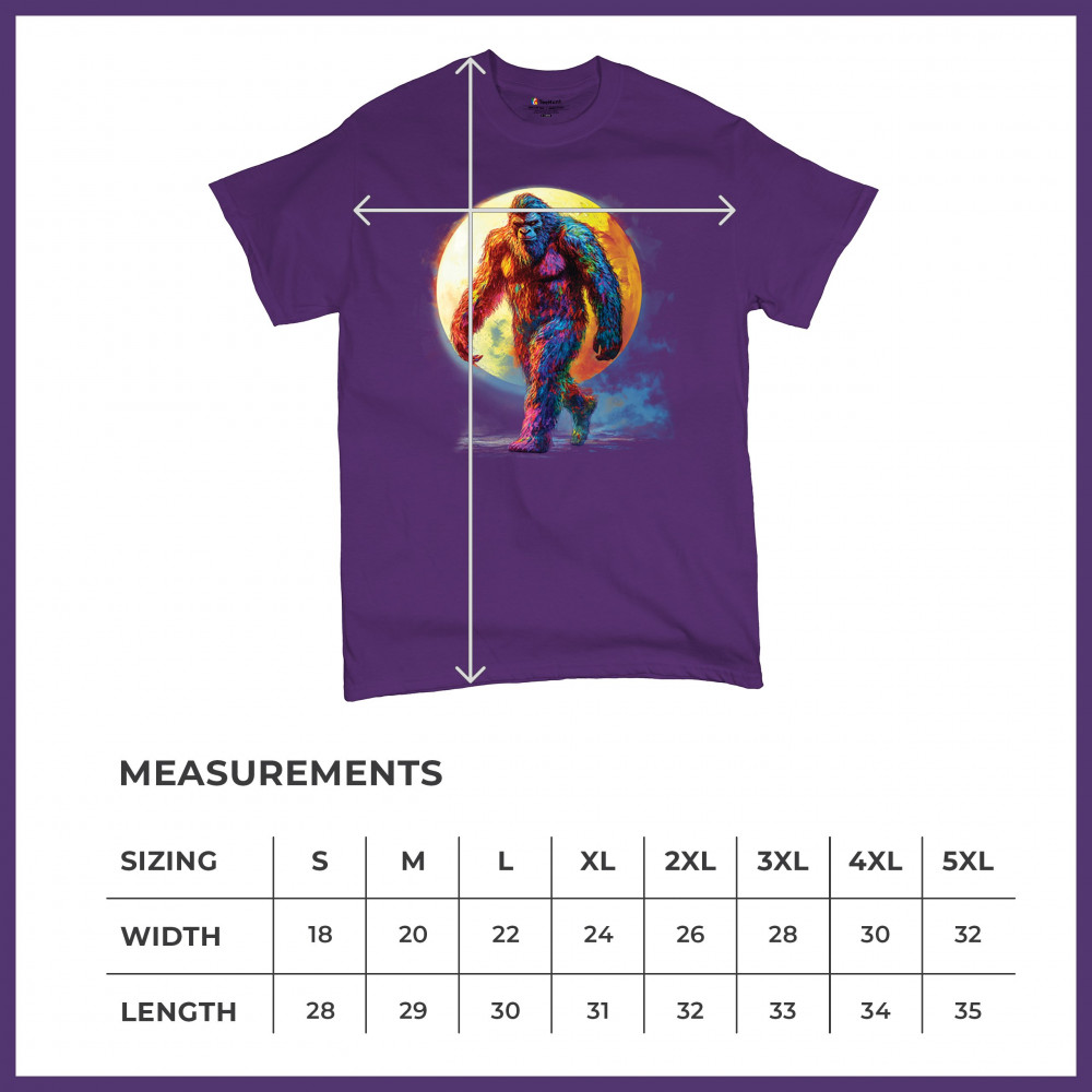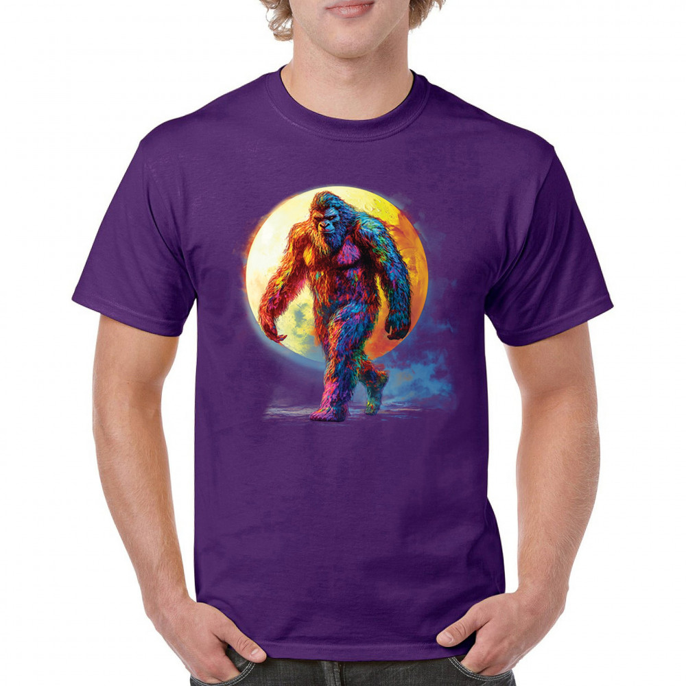 Step into a vivid cryptid dream with this rainbow Bigfoot design. Featuring a multicolor Sasquatch walking past a full moon, it fuses mythical mystery with bold, surreal art. Perfect for festival fans, night hikers, and lovers of the unexplained, this design brings eye-catching style to your wild side.