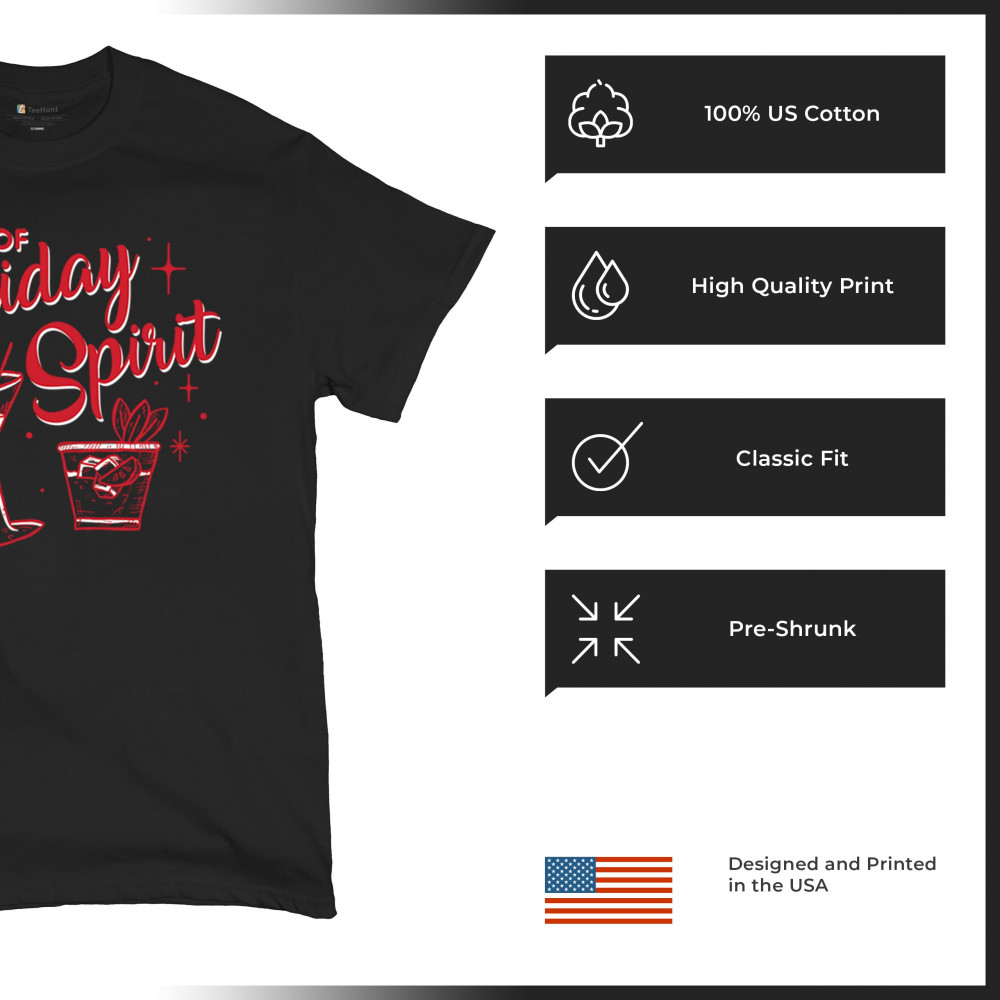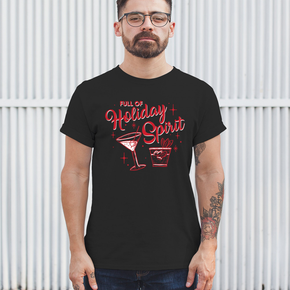 Bring the festive vibes to your holiday season with the "Full of Holiday Spirit" design. This playful print is perfect for office parties, secret Santa gifts, and cozy gatherings, adding a fun and jolly touch to any holiday event. Ideal for matching pajamas, ugly sweater contests, or as a unique present, it’s crafted to spread cheer and humor. From Xmas morning to holiday parties, this design is all about making merry memories with a festive flair.