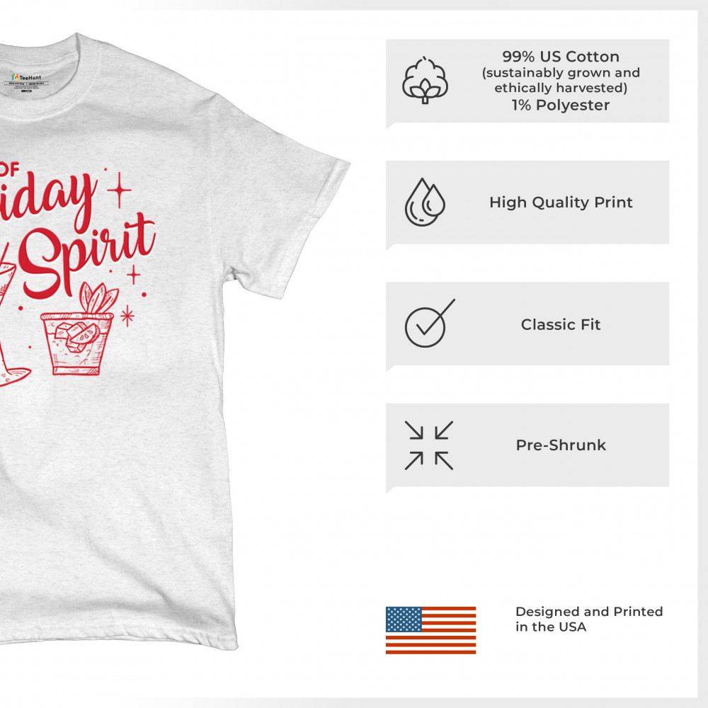 Bring the festive vibes to your holiday season with the "Full of Holiday Spirit" design. This playful print is perfect for office parties, secret Santa gifts, and cozy gatherings, adding a fun and jolly touch to any holiday event. Ideal for matching pajamas, ugly sweater contests, or as a unique present, it’s crafted to spread cheer and humor. From Xmas morning to holiday parties, this design is all about making merry memories with a festive flair.