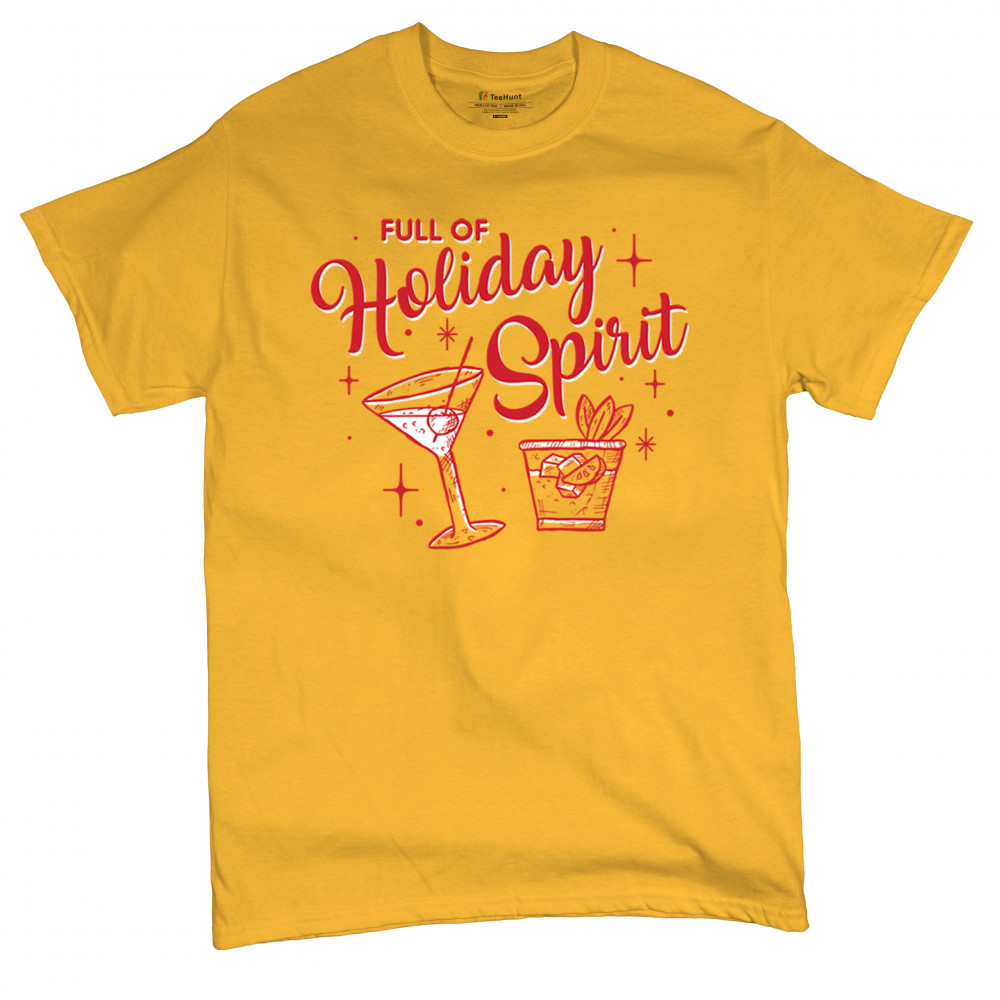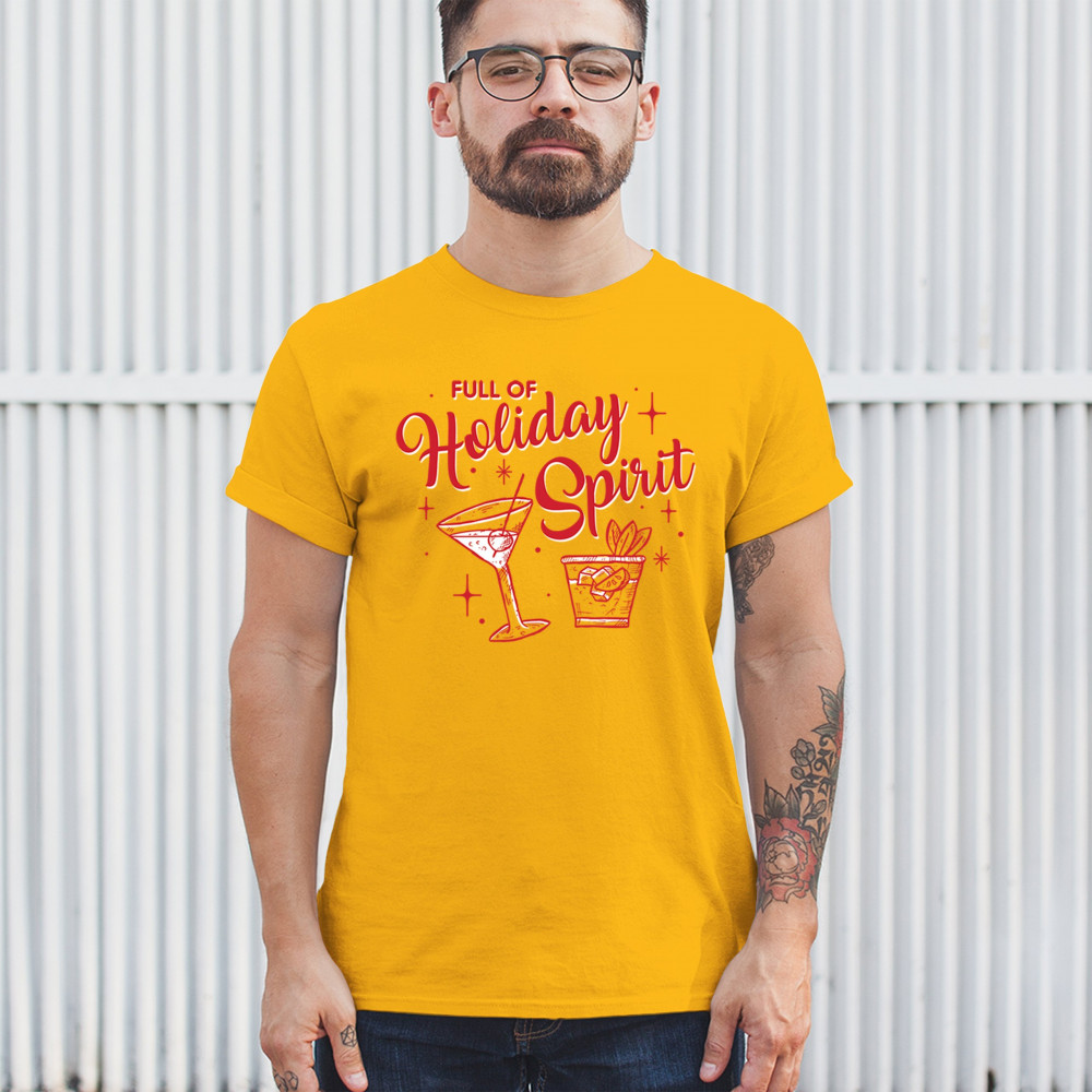 Bring the festive vibes to your holiday season with the "Full of Holiday Spirit" design. This playful print is perfect for office parties, secret Santa gifts, and cozy gatherings, adding a fun and jolly touch to any holiday event. Ideal for matching pajamas, ugly sweater contests, or as a unique present, it’s crafted to spread cheer and humor. From Xmas morning to holiday parties, this design is all about making merry memories with a festive flair.