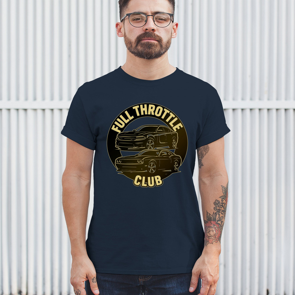 Join the full throttle club with this bold muscle car design featuring two aggressive builds in top form. Crafted for gearheads, racers, and performance fans, it celebrates fast lane life, V8 attitude, and car culture pride. Ideal for meets, drags, or showing off horsepower at its peak.