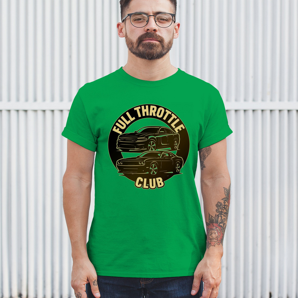 Join the full throttle club with this bold muscle car design featuring two aggressive builds in top form. Crafted for gearheads, racers, and performance fans, it celebrates fast lane life, V8 attitude, and car culture pride. Ideal for meets, drags, or showing off horsepower at its peak.