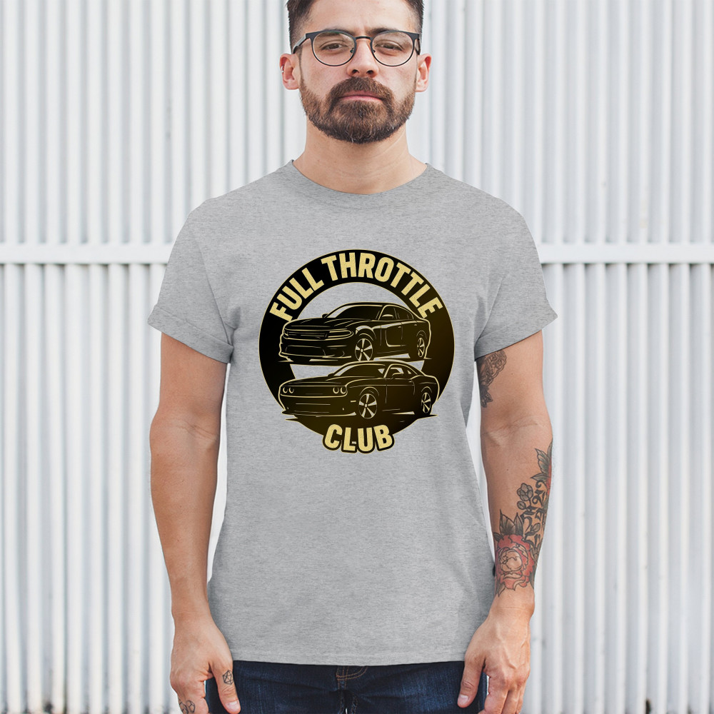 Join the full throttle club with this bold muscle car design featuring two aggressive builds in top form. Crafted for gearheads, racers, and performance fans, it celebrates fast lane life, V8 attitude, and car culture pride. Ideal for meets, drags, or showing off horsepower at its peak.