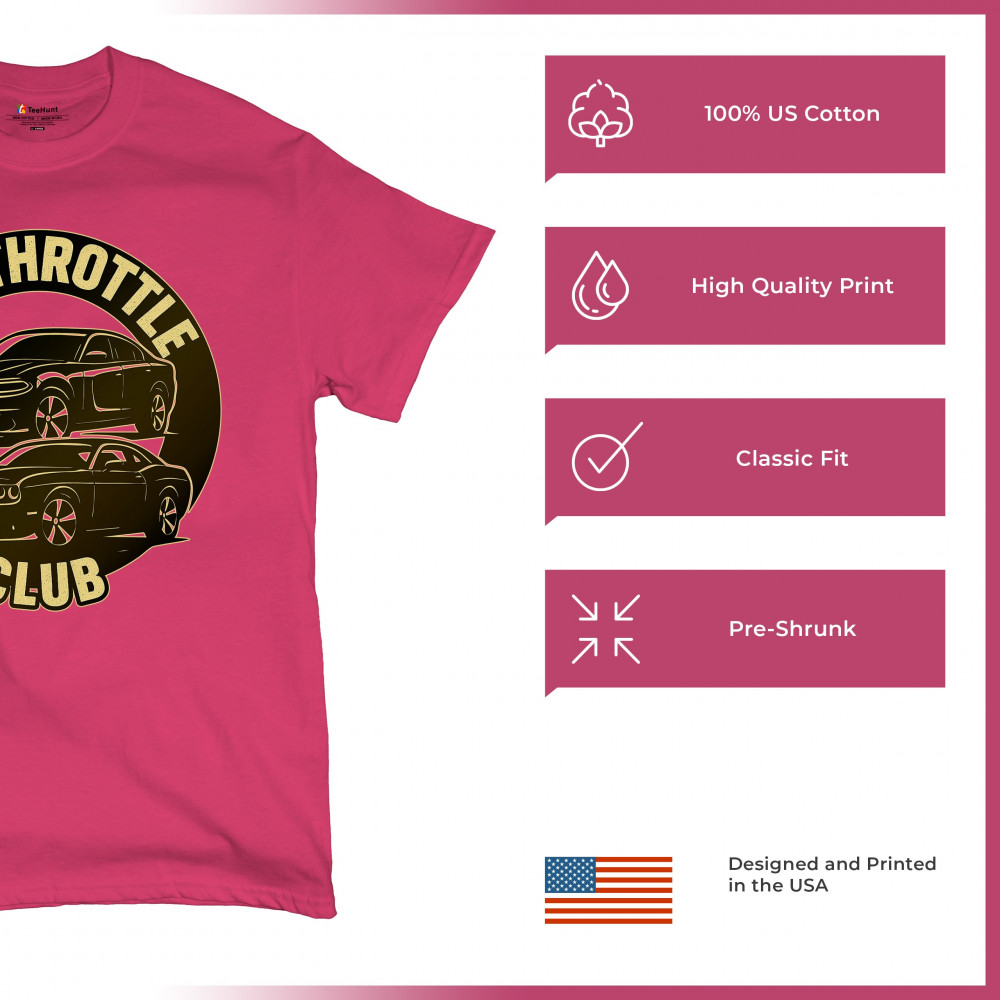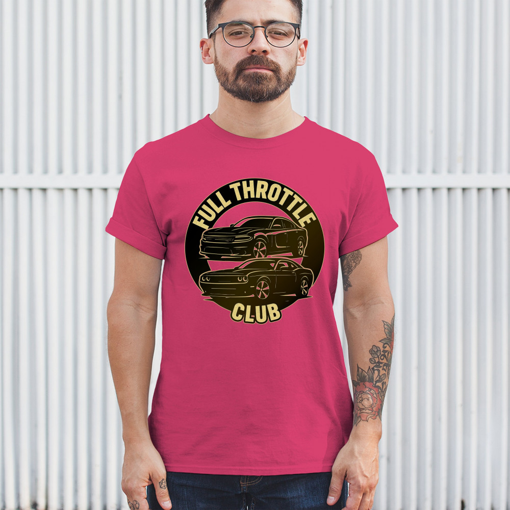 Join the full throttle club with this bold muscle car design featuring two aggressive builds in top form. Crafted for gearheads, racers, and performance fans, it celebrates fast lane life, V8 attitude, and car culture pride. Ideal for meets, drags, or showing off horsepower at its peak.