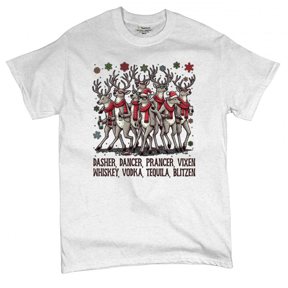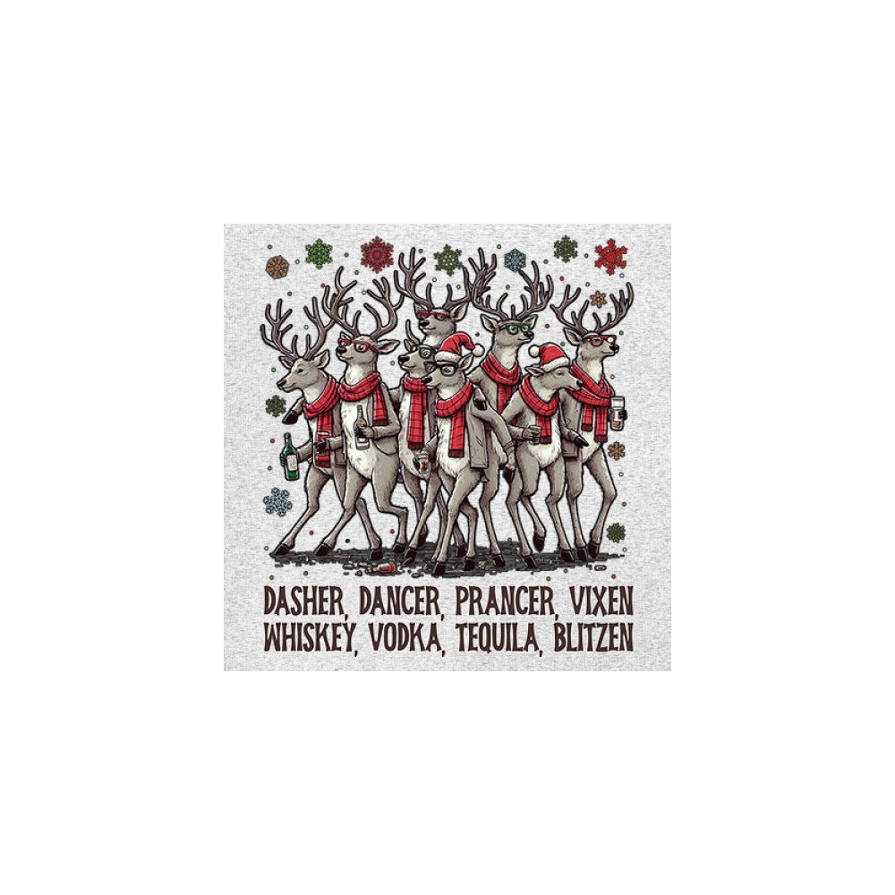 This funny holiday design features a squad of drinking reindeer carrying bottles and dressed in scarves for the ultimate Christmas party vibe. Great for bar crawls, office parties, winter gatherings, adult holiday events, white elephant exchanges, festive nights out, and anyone who loves spirited Christmas humor with a cheeky personality.
