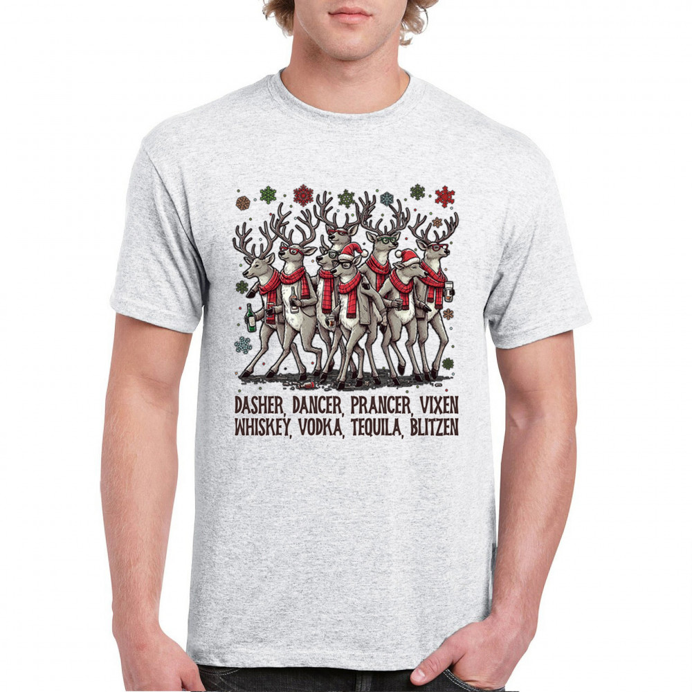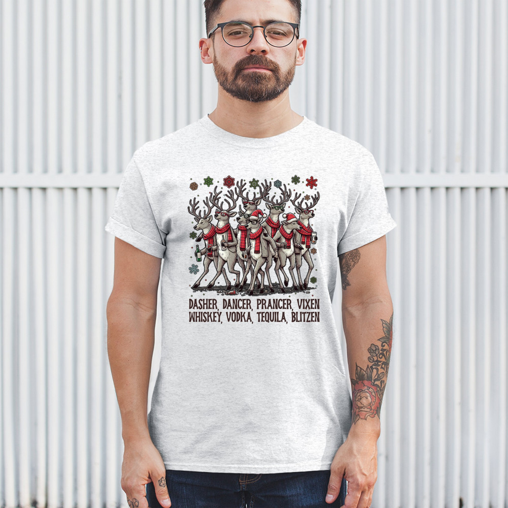 Funny drinking-reindeer Christmas design perfect for parties, bar crawls, and festive adult humor. Great for holiday laughs and spirited winter fun.