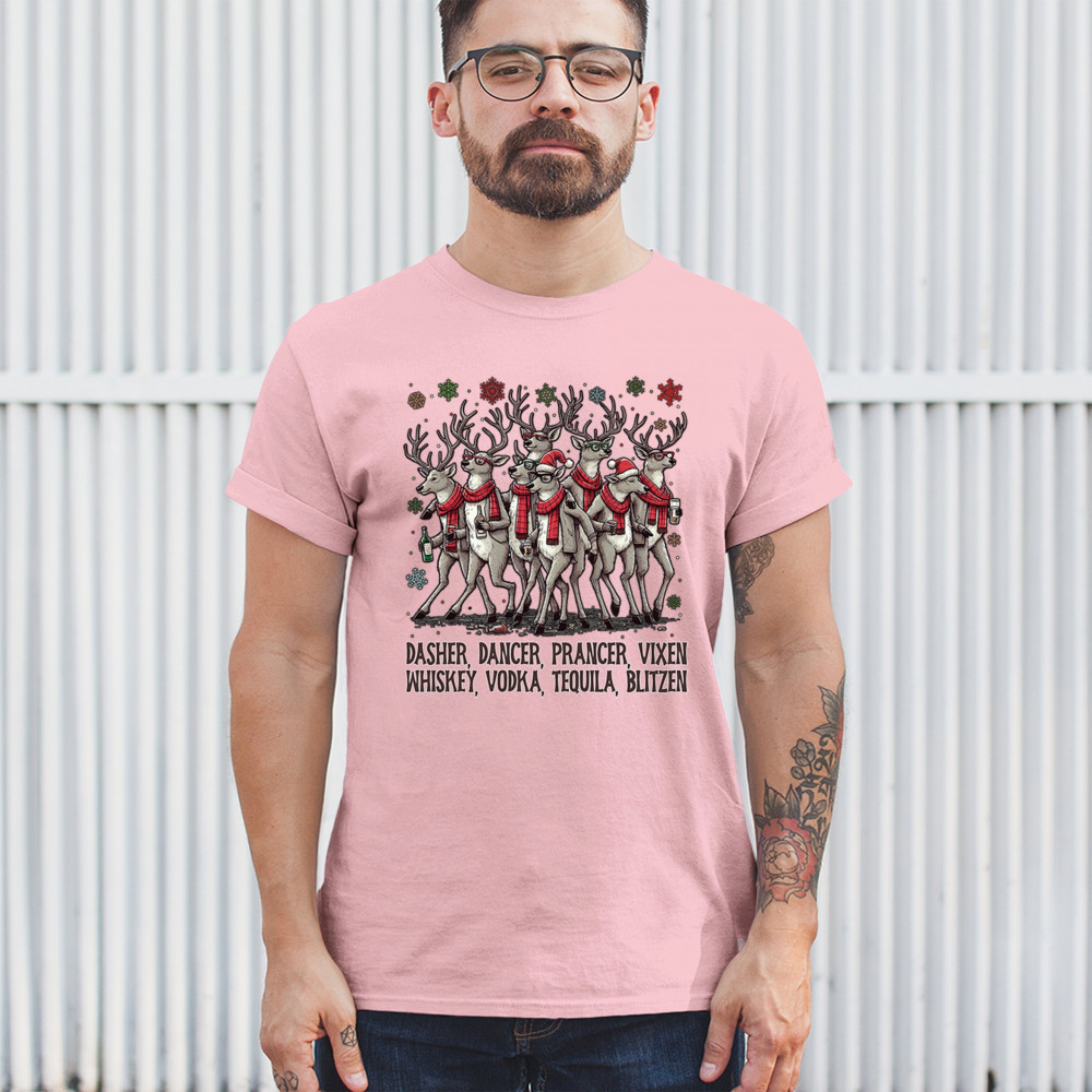 Funny drinking-reindeer Christmas design perfect for parties, bar crawls, and festive adult humor. Great for holiday laughs and spirited winter fun.