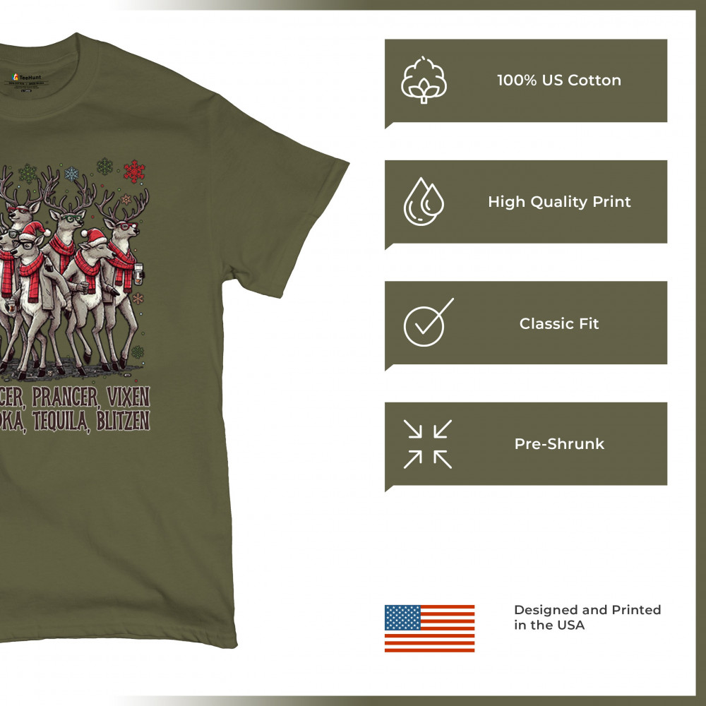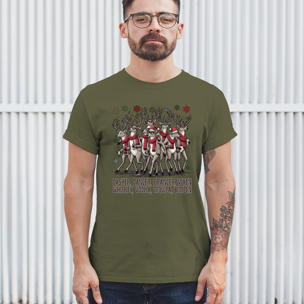 Funny drinking-reindeer Christmas design perfect for parties, bar crawls, and festive adult humor. Great for holiday laughs and spirited winter fun.