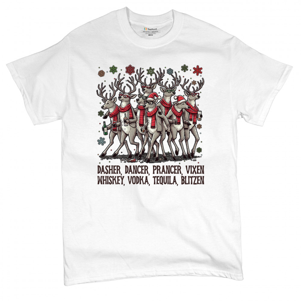 This funny holiday design features a squad of drinking reindeer carrying bottles and dressed in scarves for the ultimate Christmas party vibe. Great for bar crawls, office parties, winter gatherings, adult holiday events, white elephant exchanges, festive nights out, and anyone who loves spirited Christmas humor with a cheeky personality.