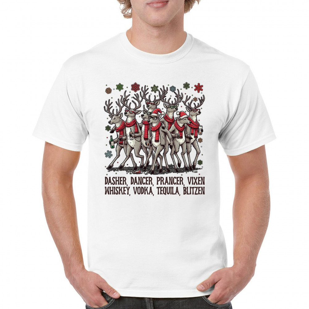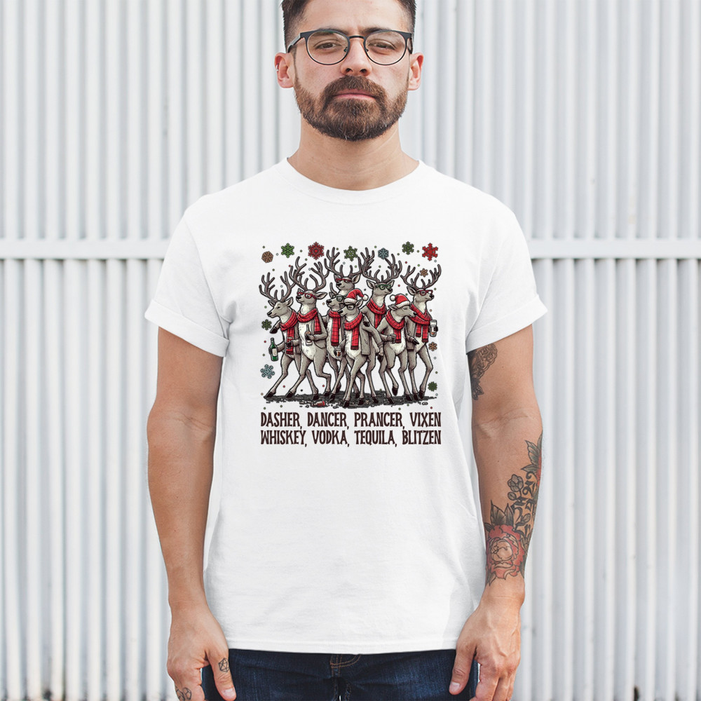 Funny drinking-reindeer Christmas design perfect for parties, bar crawls, and festive adult humor. Great for holiday laughs and spirited winter fun.