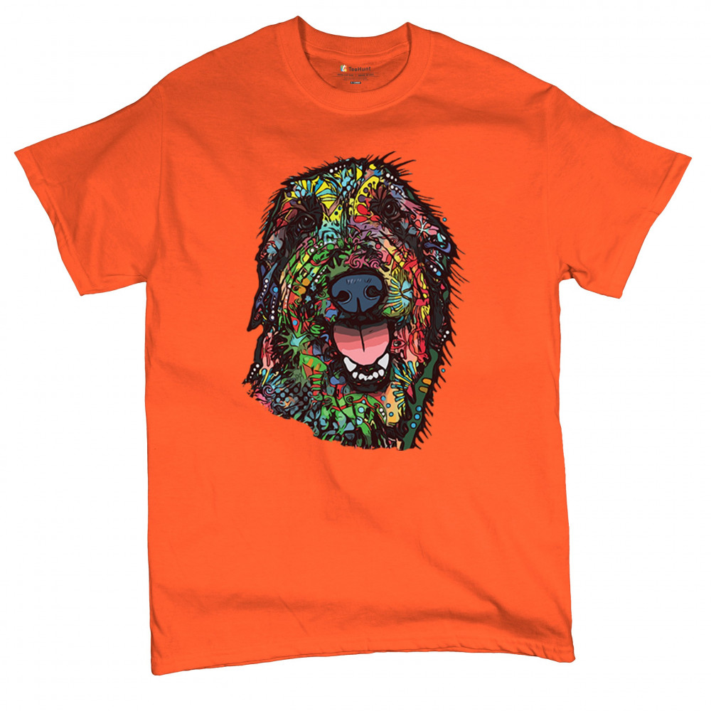 FUNNY FEELING HAPPY DOG FACE t-shirt dean russo cheerful pet men's tee orange
