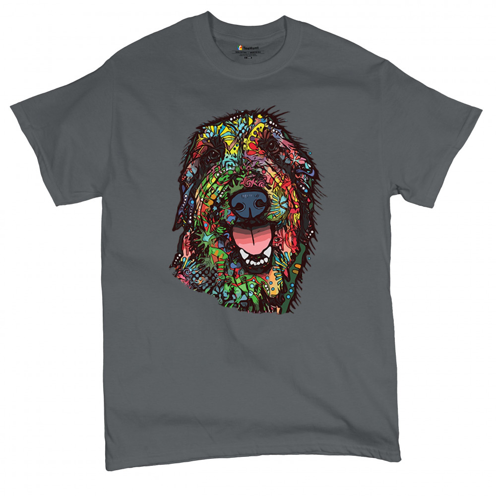 FUNNY FEELING HAPPY DOG FACE t-shirt dean russo cheerful pet men's tee charcoal
