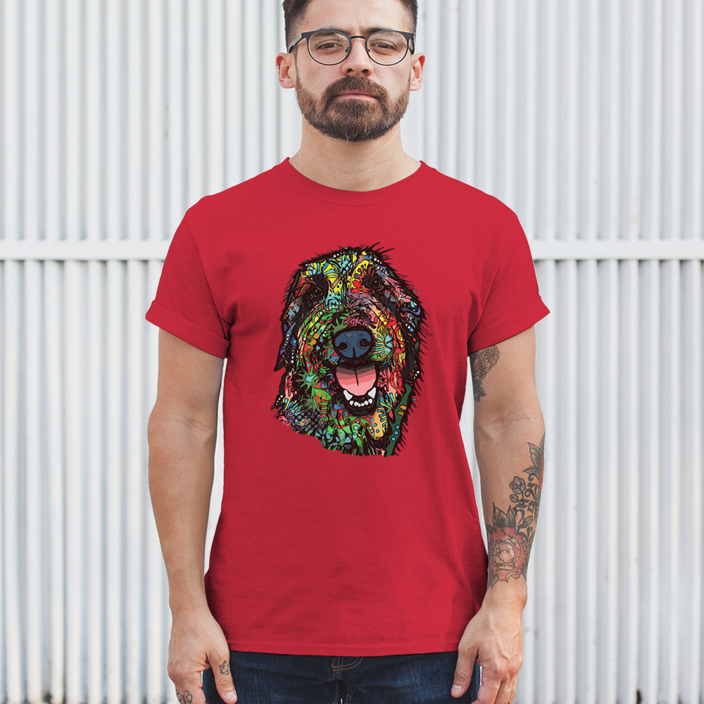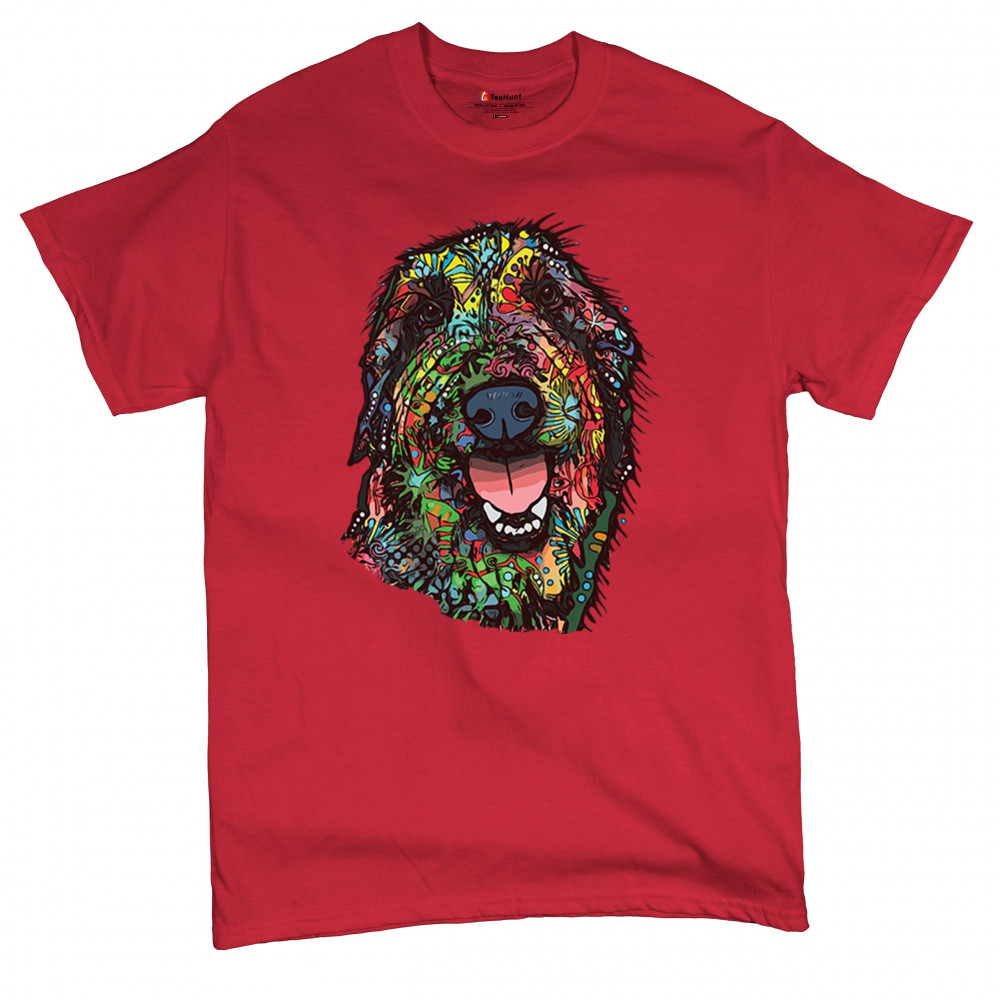 FUNNY FEELING HAPPY DOG FACE t-shirt dean russo cheerful pet men's tee red