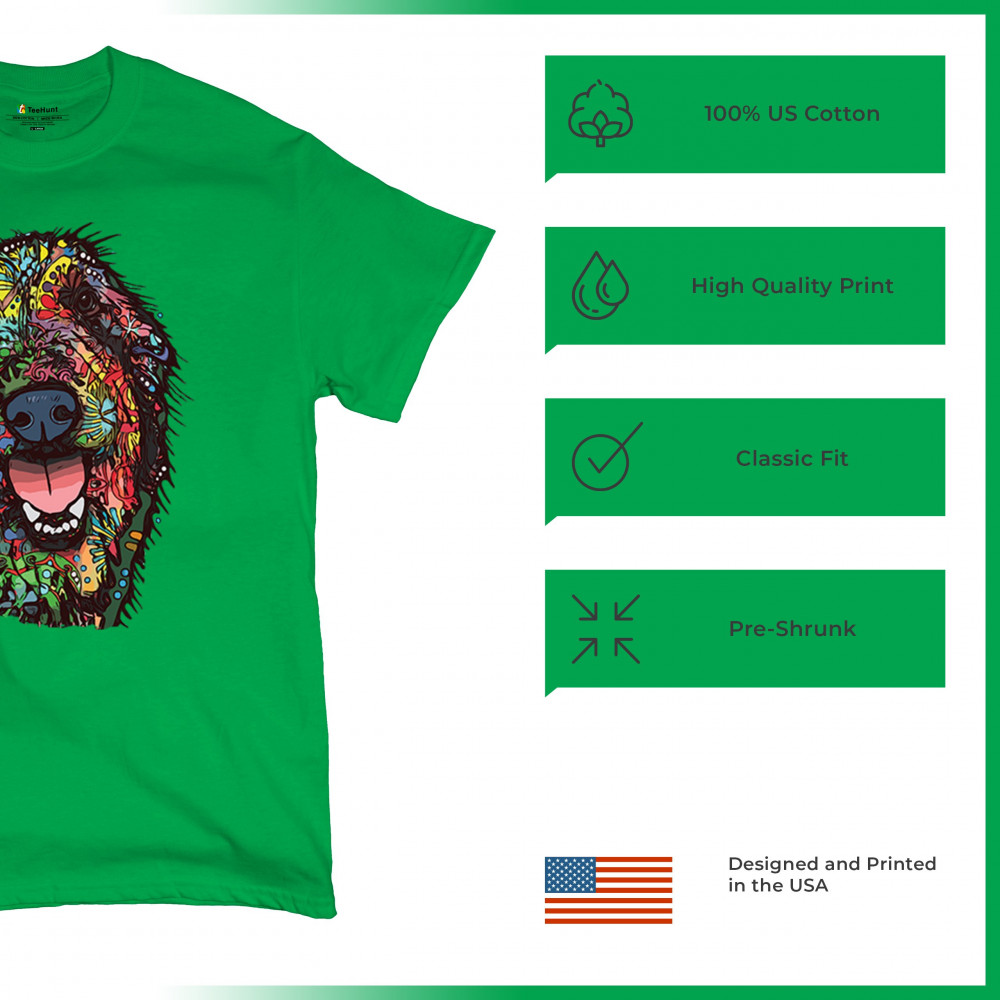 FUNNY FEELING HAPPY DOG FACE t-shirt dean russo cheerful pet men's tee green