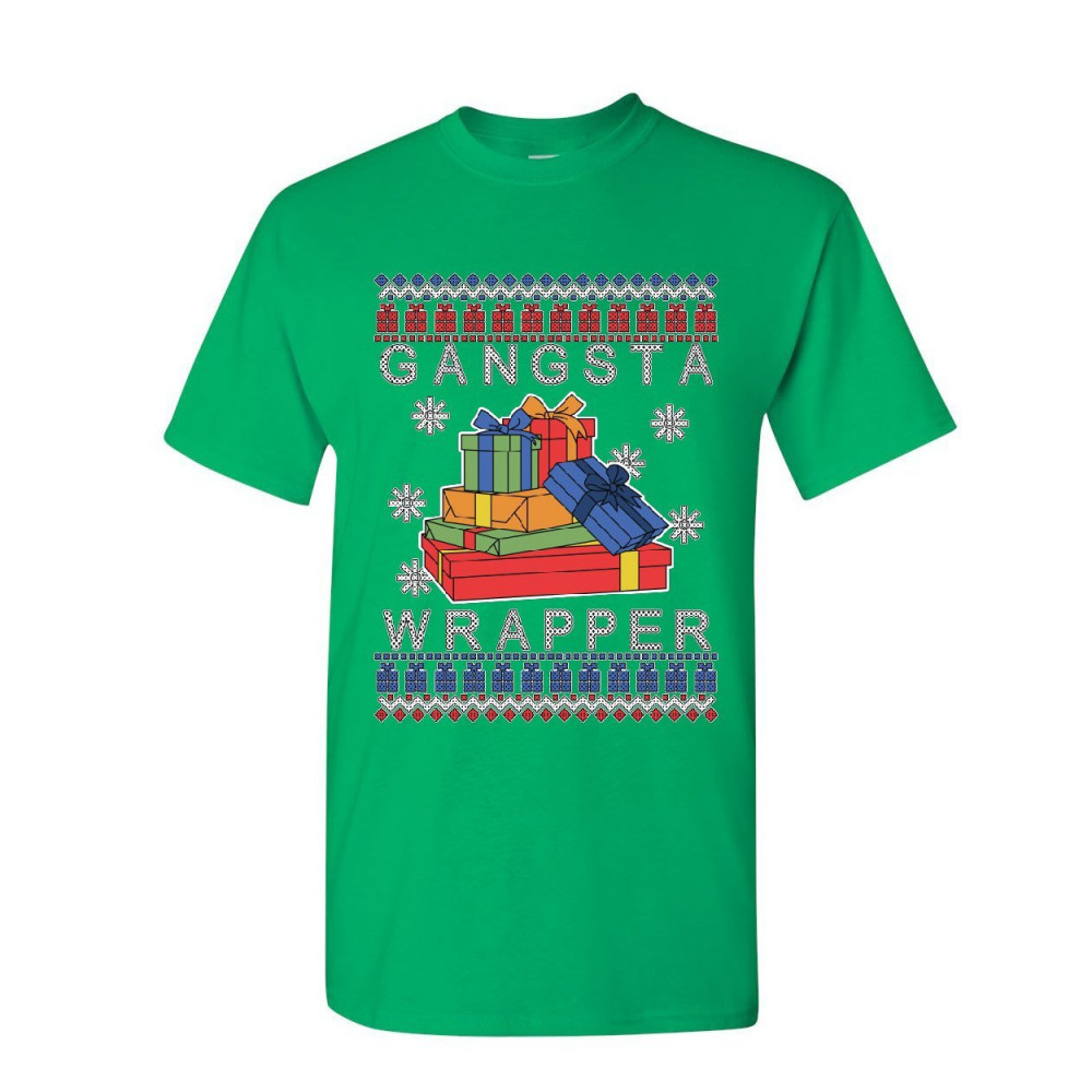 GANGSTA WRAPPER ugly sweater t-shirt merry jolly christmas xmas mens tee shirt green