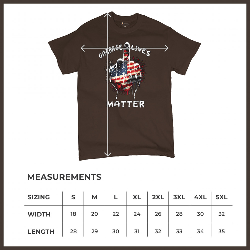 The "Garbage Lives Matter" design is a fearless expression of American values and pride. With the American flag as its centerpiece, this bold and patriotic design speaks volumes to Trump supporters, conservatives, and those who believe in the people's mandate. Join the fight for America First, never surrender, and celebrate the Red Wave movement with this striking statement piece.