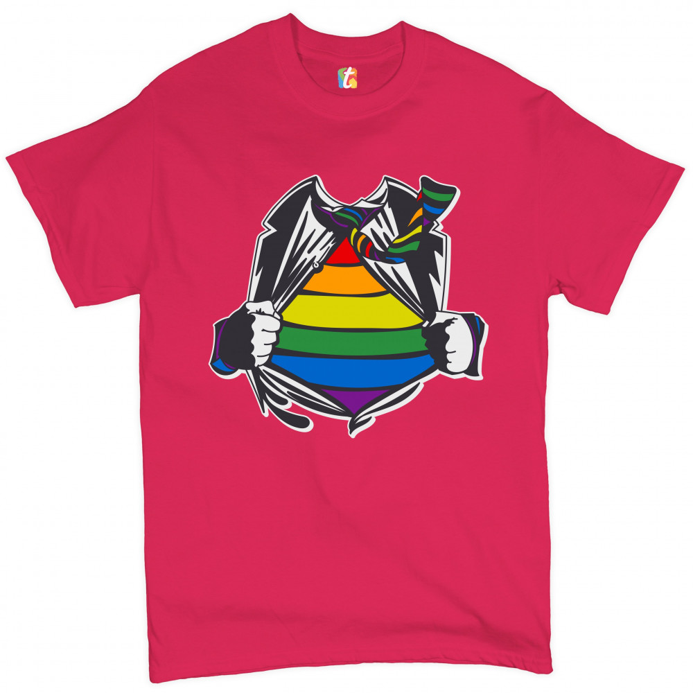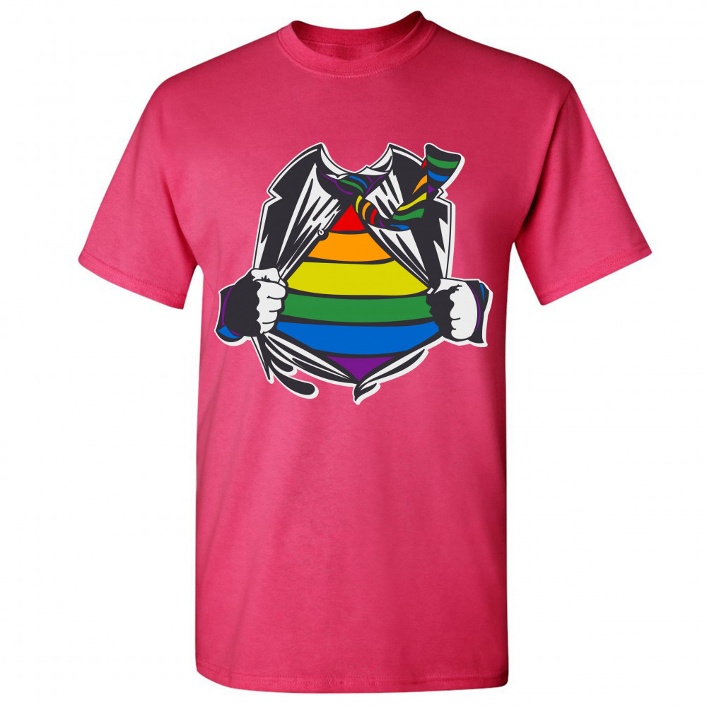GAY SUPERHERO PARODY t-shirt lesbian bi transgender pride rainbow men's tee hot pink